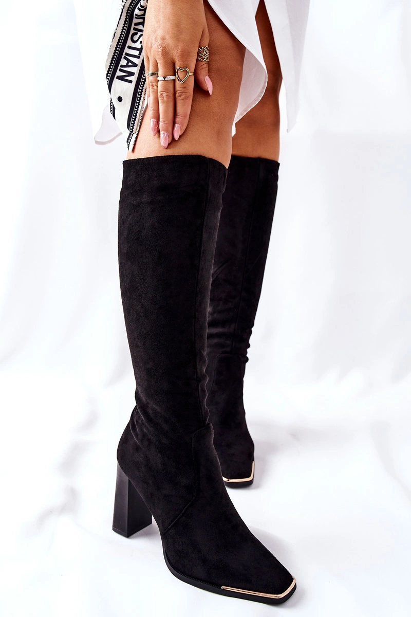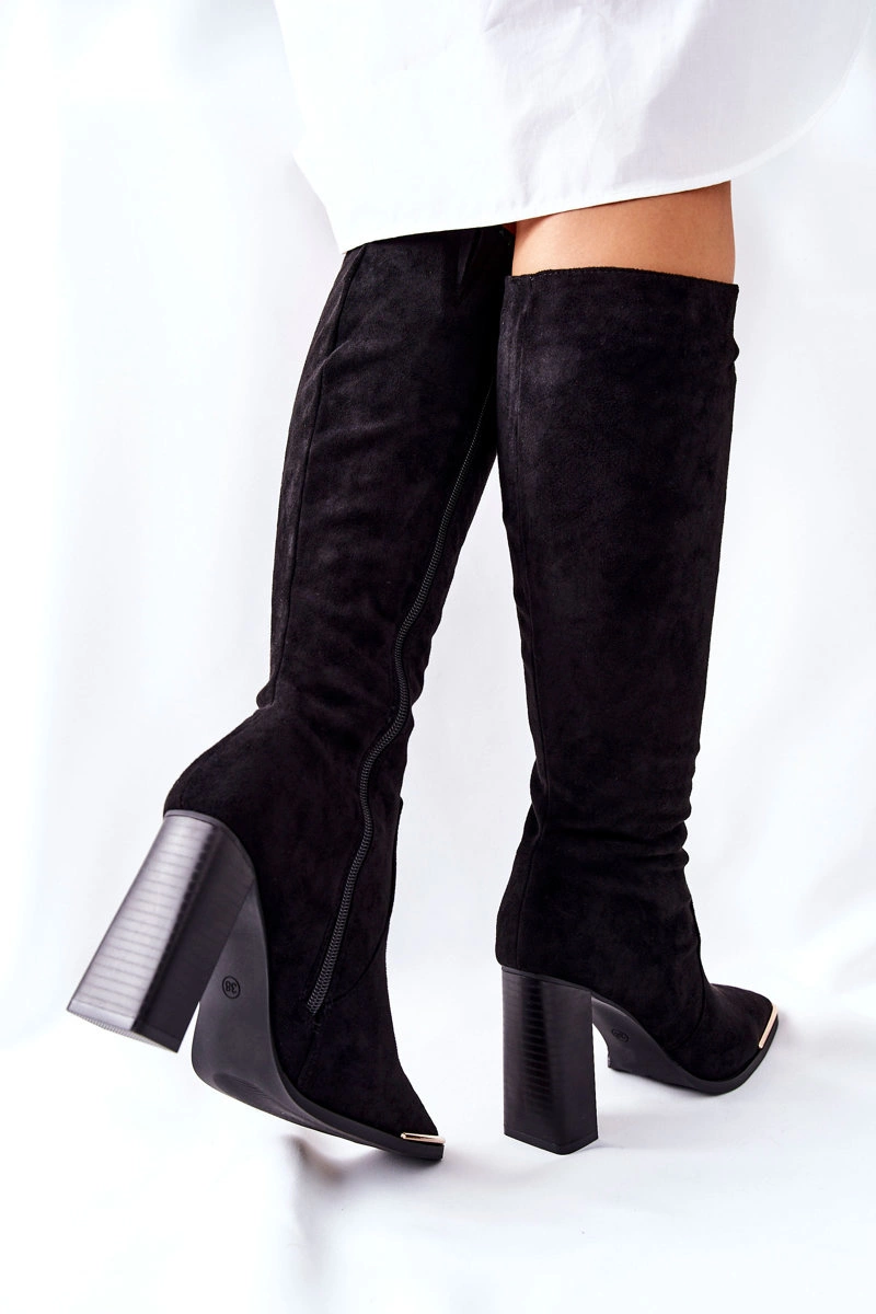 Damskie Ciepłe Kozaki Złoty Nosek Czarne Puentos