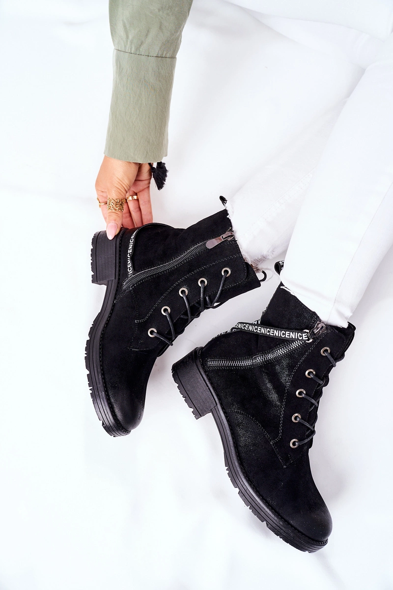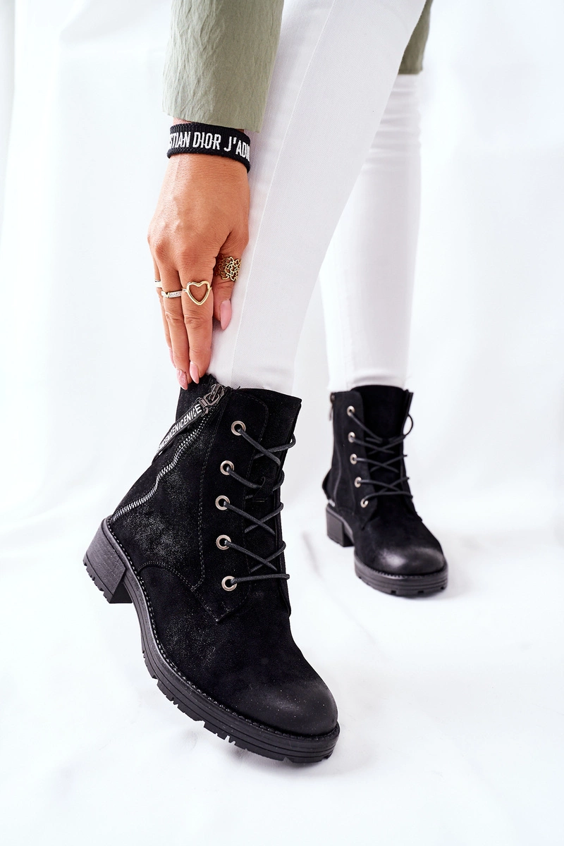 Wierzch wykonany ze skóry ekologicznej. Suwak na boku ułatwi zakładanie. Ocieplane kocem obuwniczym. Dodatkowy ozdobny zamek. Przy wyborze rozmiaru prosimy sugerować się tabelą rozmiarów.