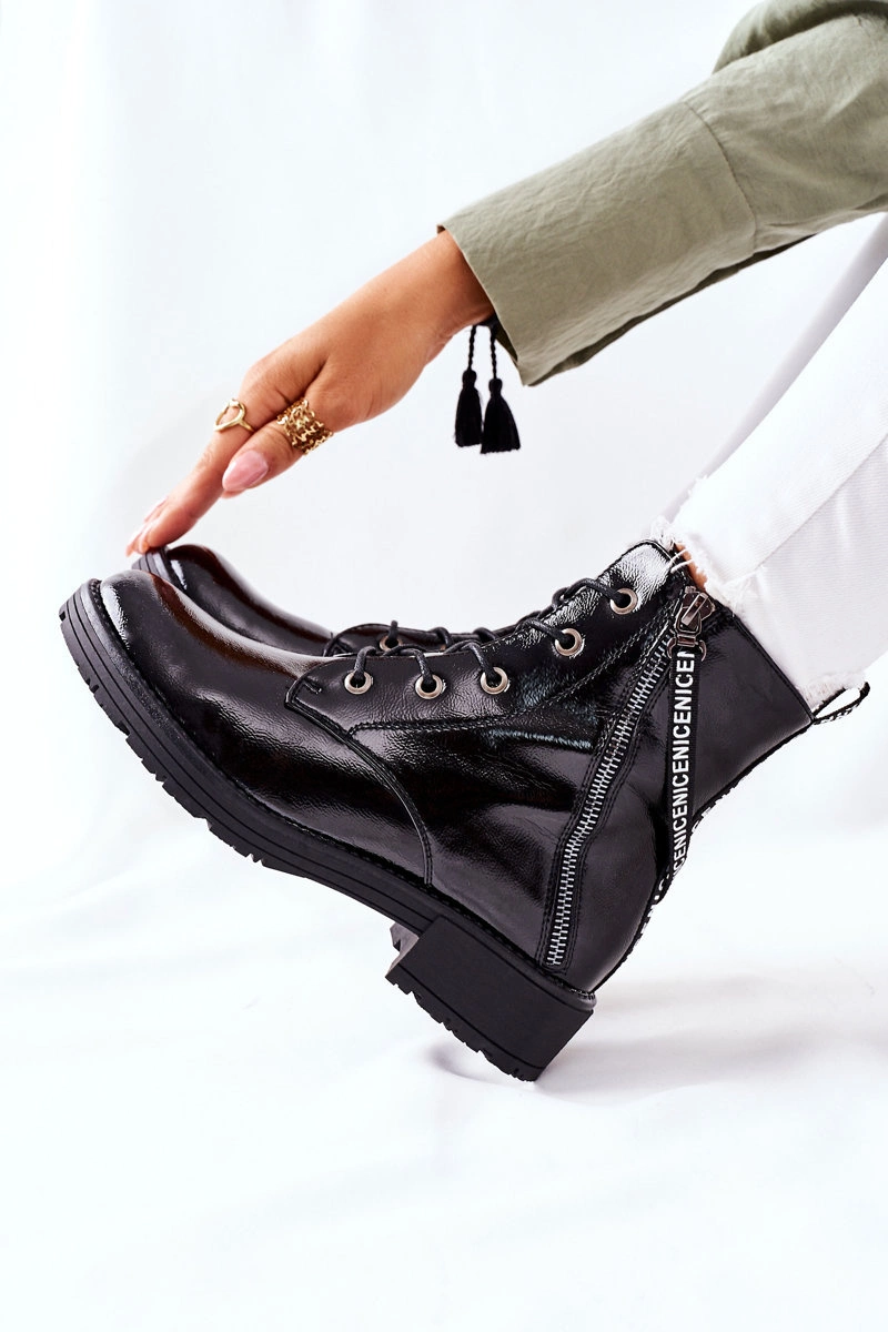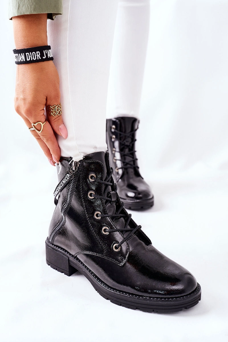 Botki Damskie Workery Lakierowane Czarne Goorey