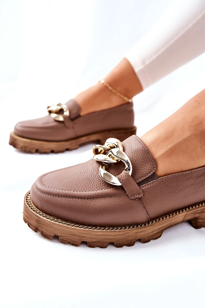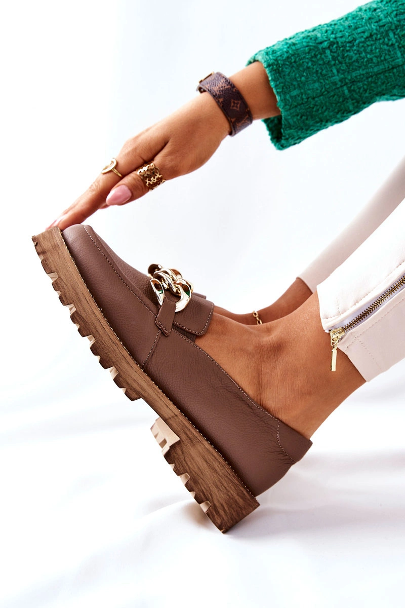 Damskie Półbuty Skórzane Loafery Brązowe Sthonto