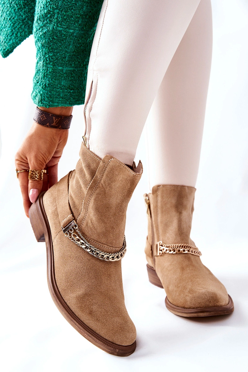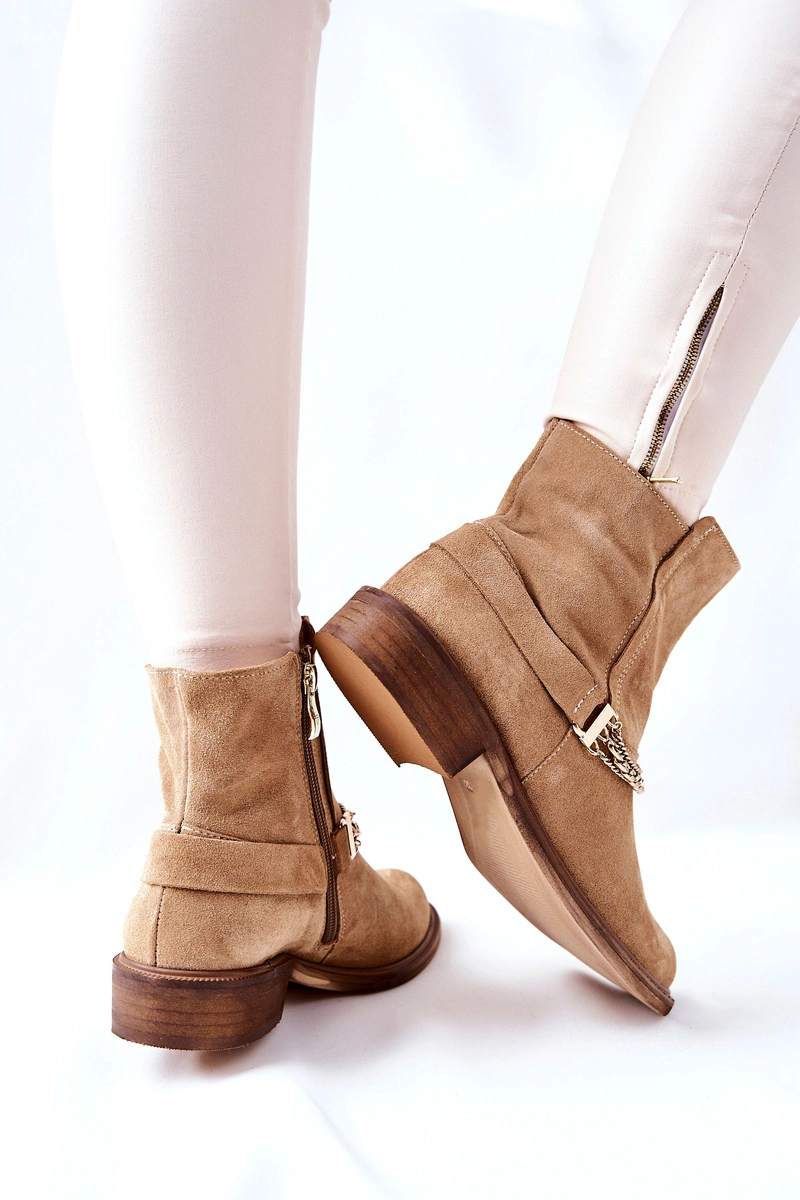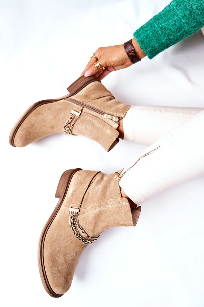 Damskie Botki Skórzane Nicole Beżowe Dome