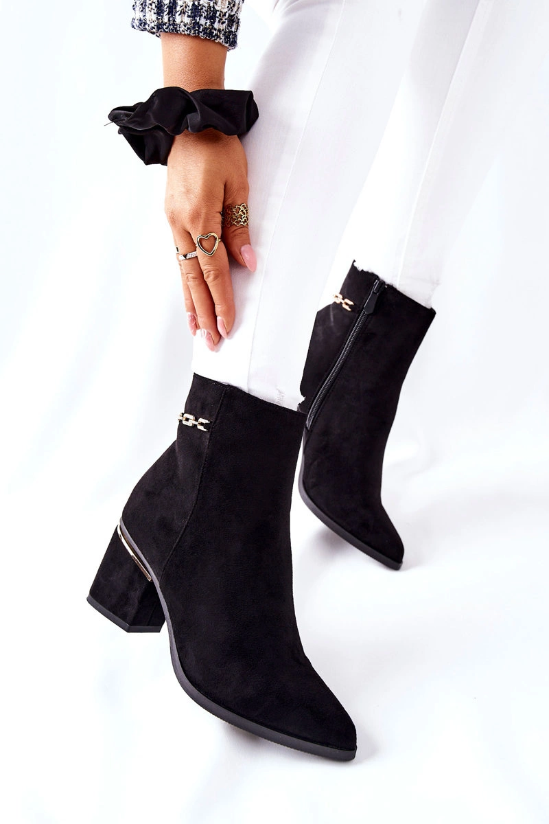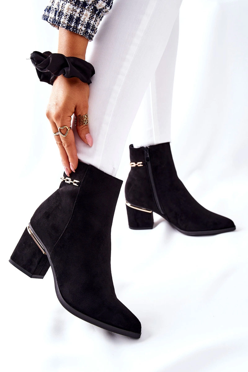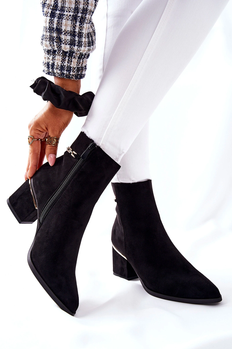 Damskie Zamszowe Botki Na Słupku Czarne One Step