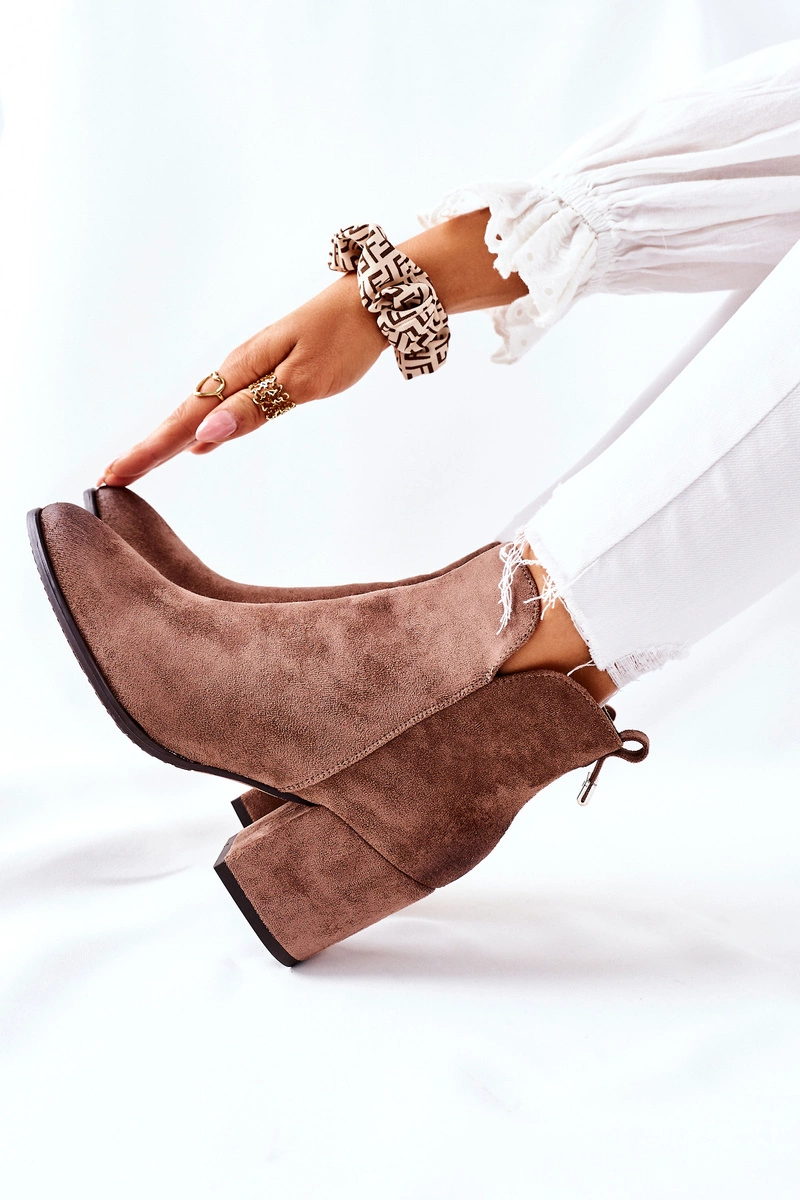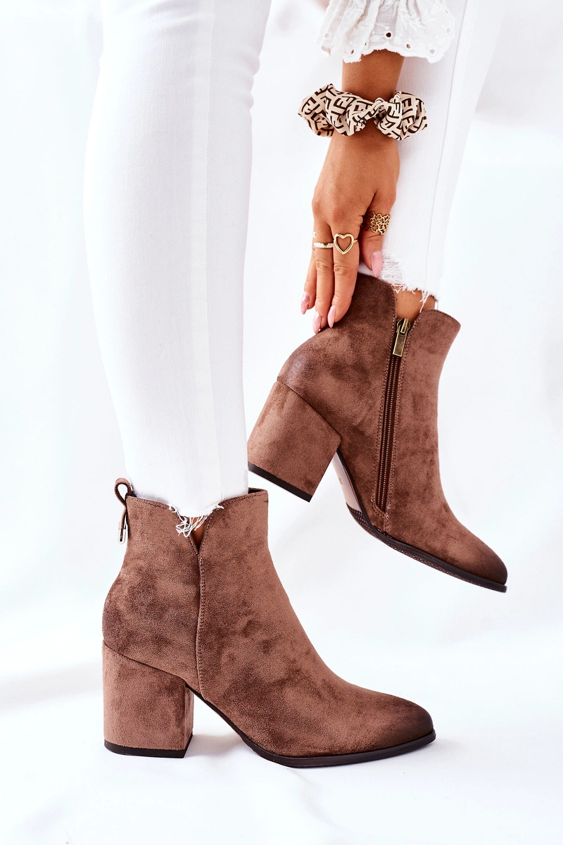 Botki Damskie Na Słupku Zamszowe Beżowe Carrick