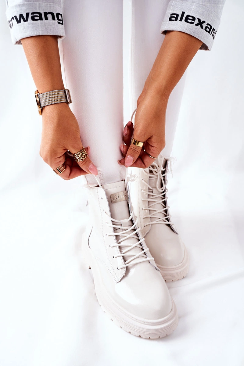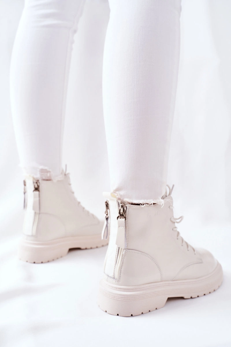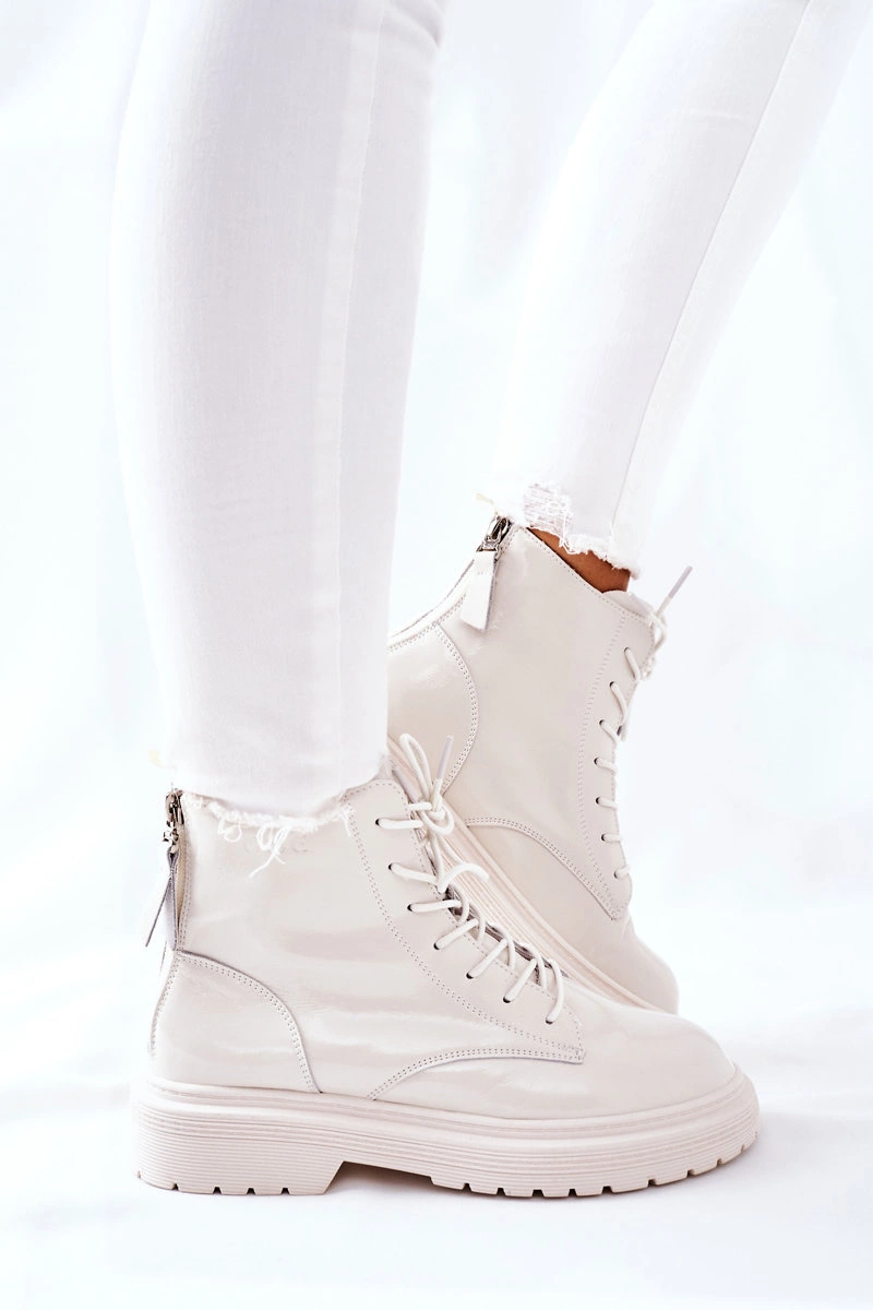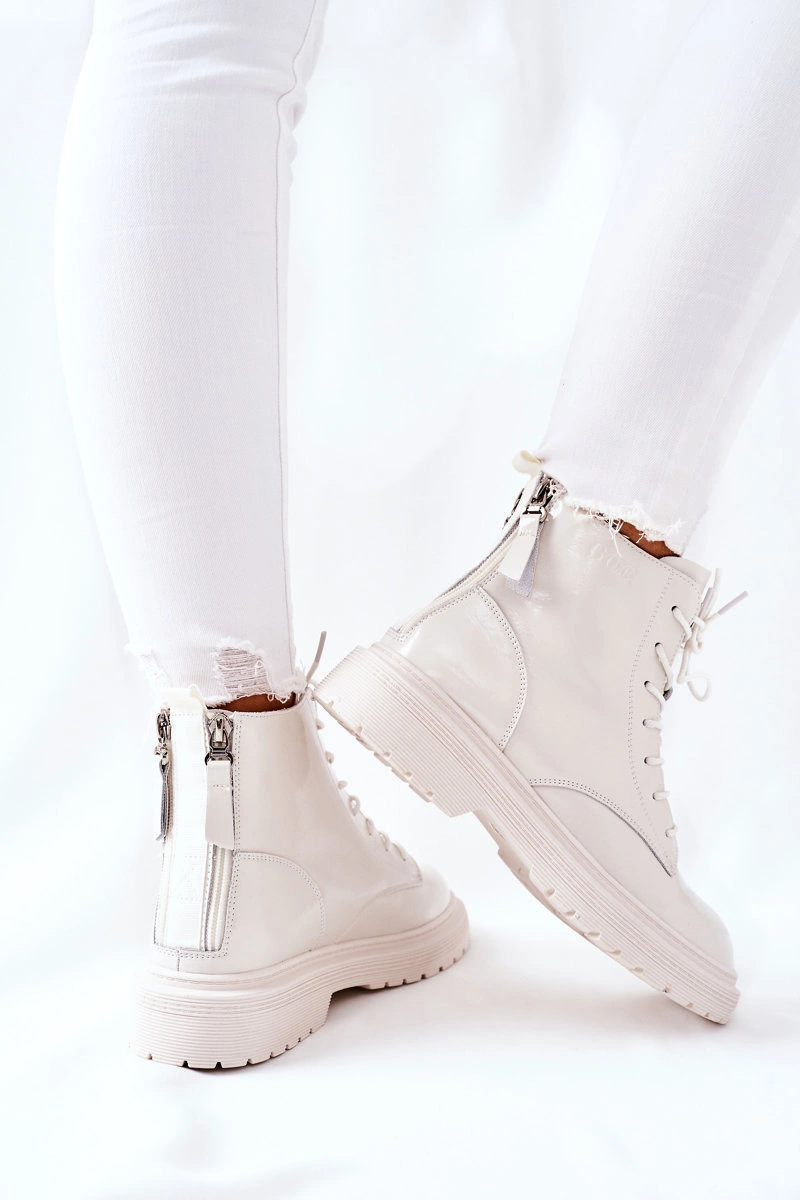 Damskie Skórzane Botki GOE II2N4013 Białe