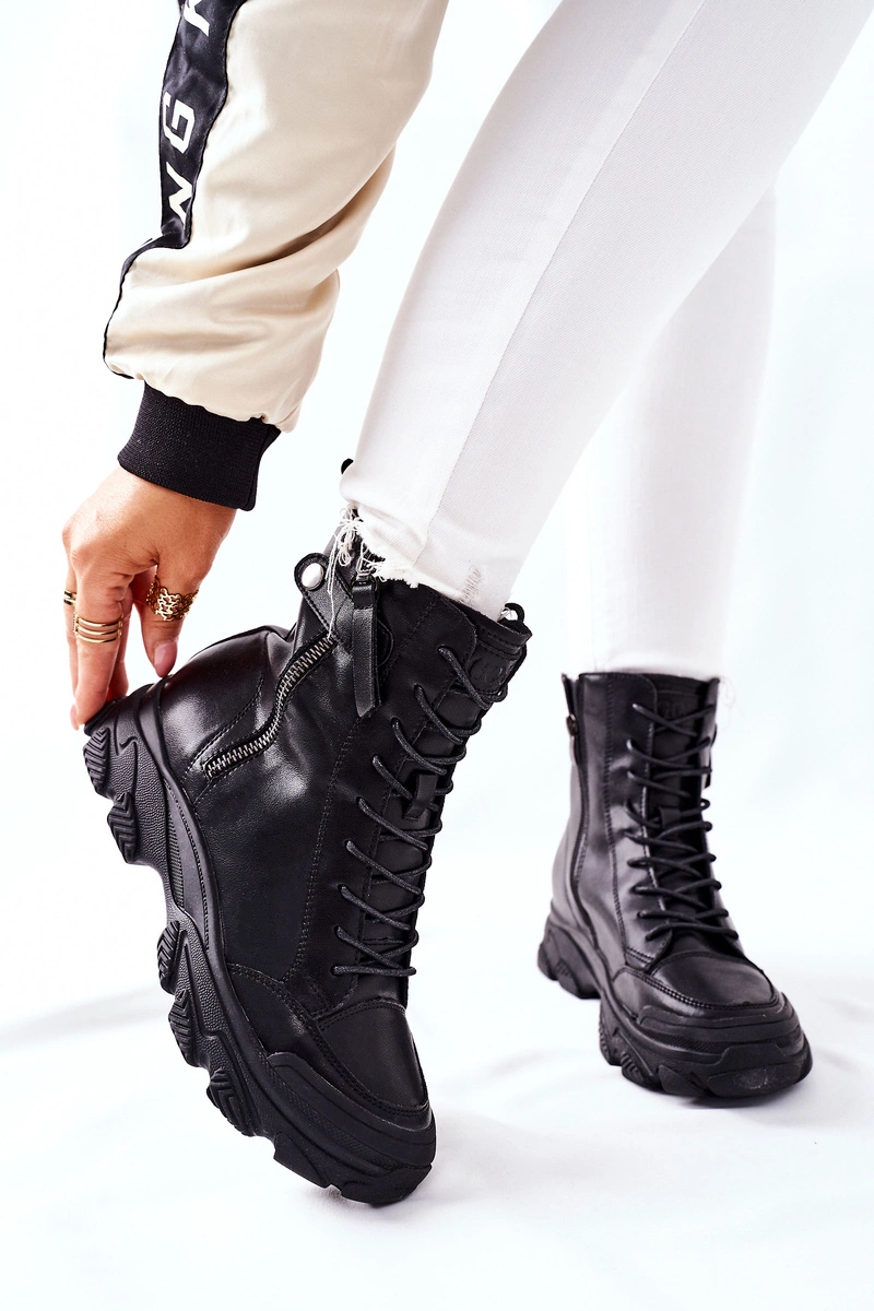 Damskie Skórzane Botki GOE II2N4031 Czarne