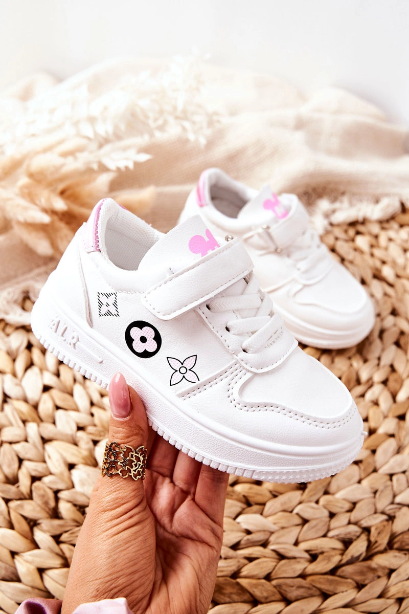 Dziecięce Sportowe Buty Na Rzepy Biało Różowe Aletris