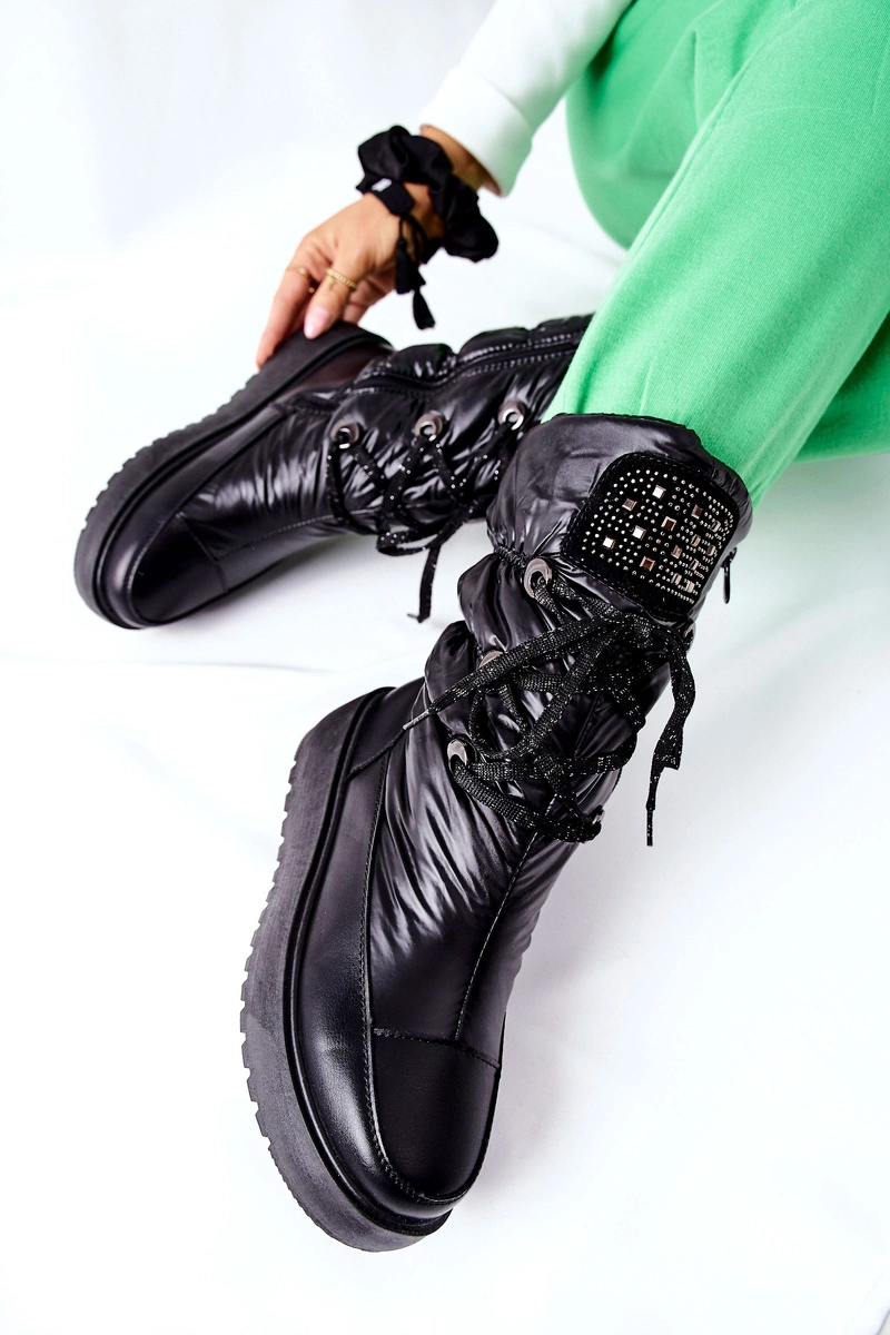 Damskie Śniegowce Ocieplane Czarne Chardonnay