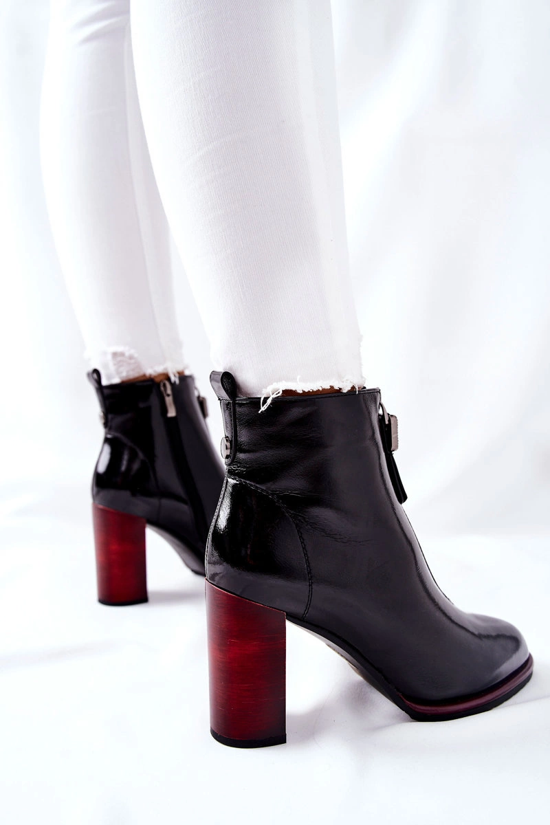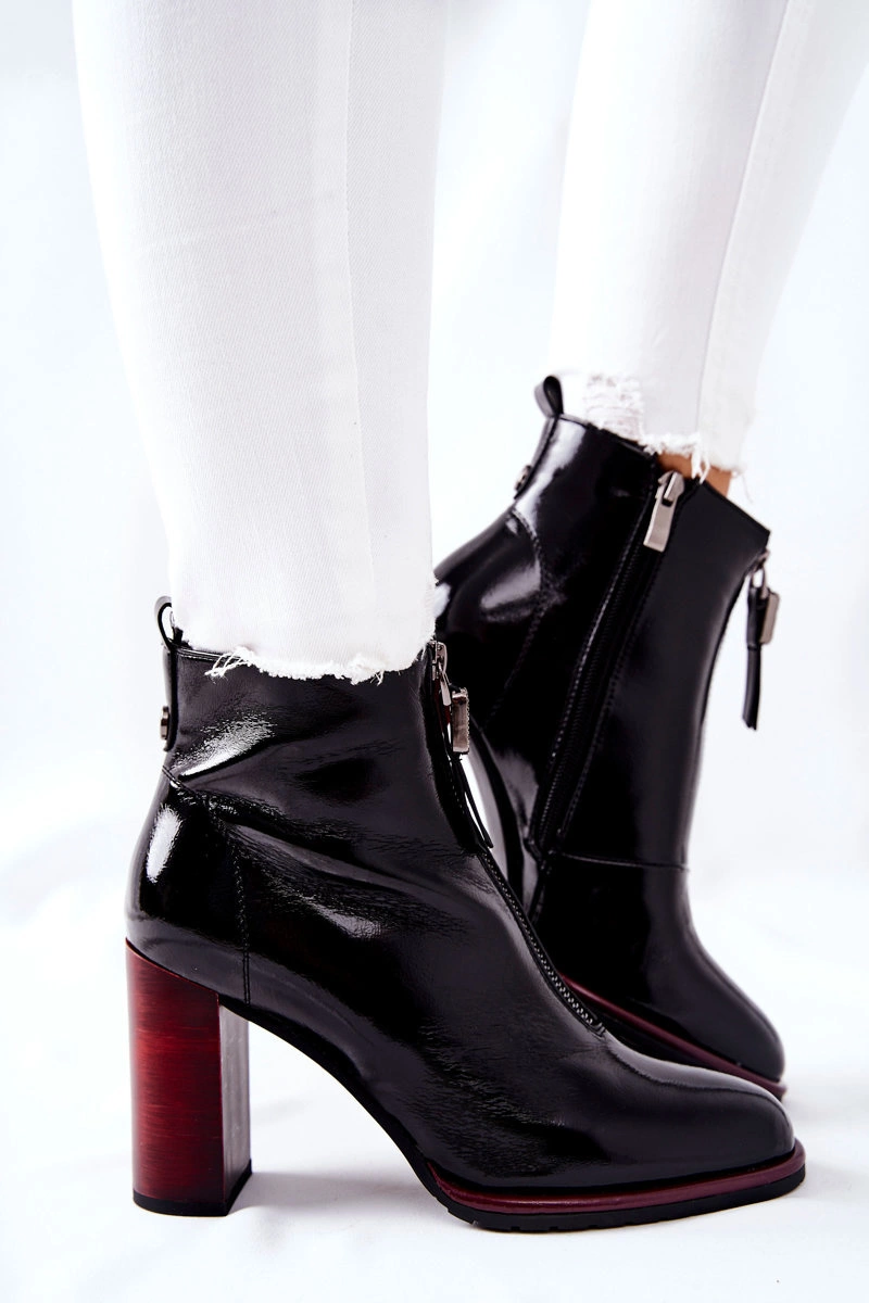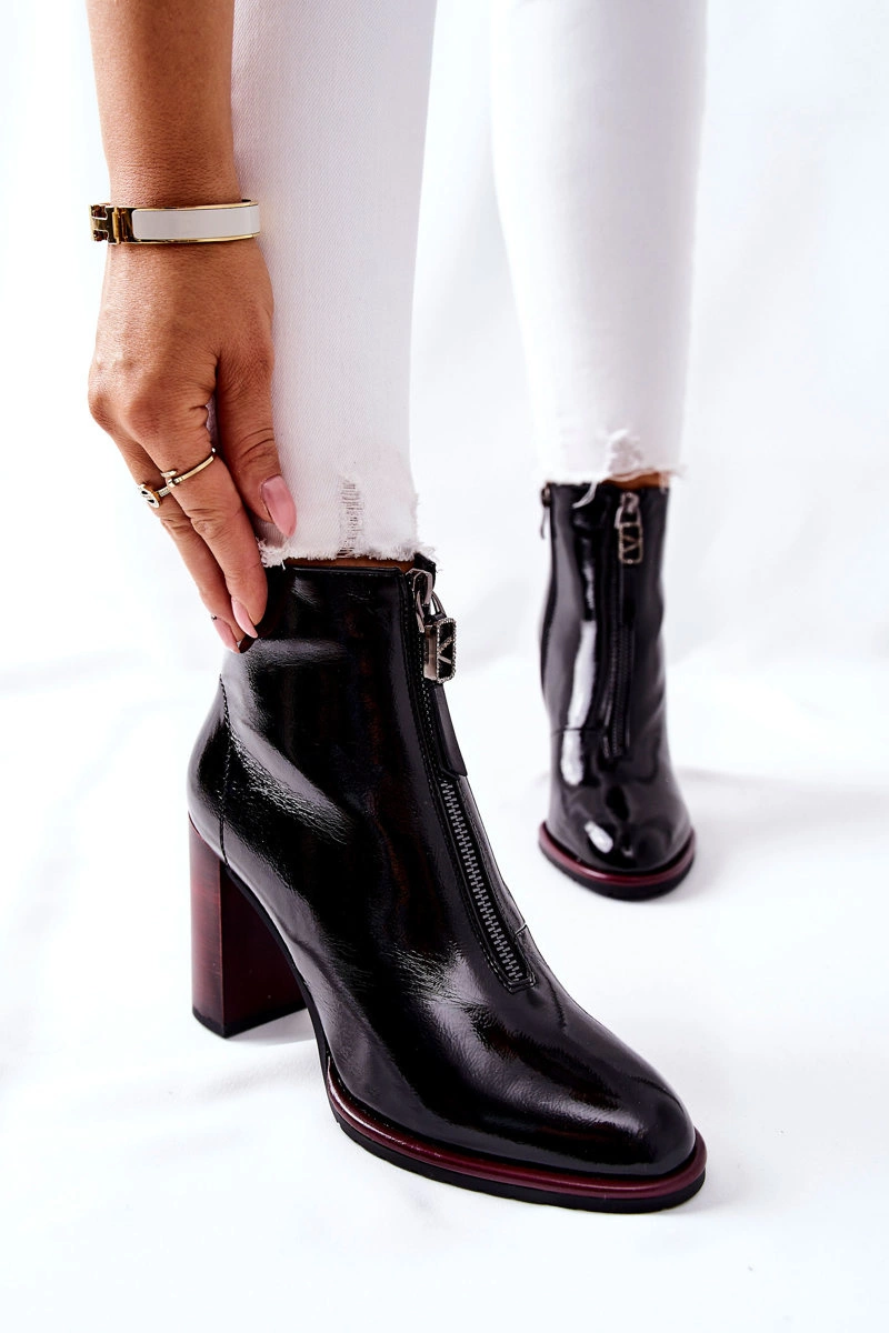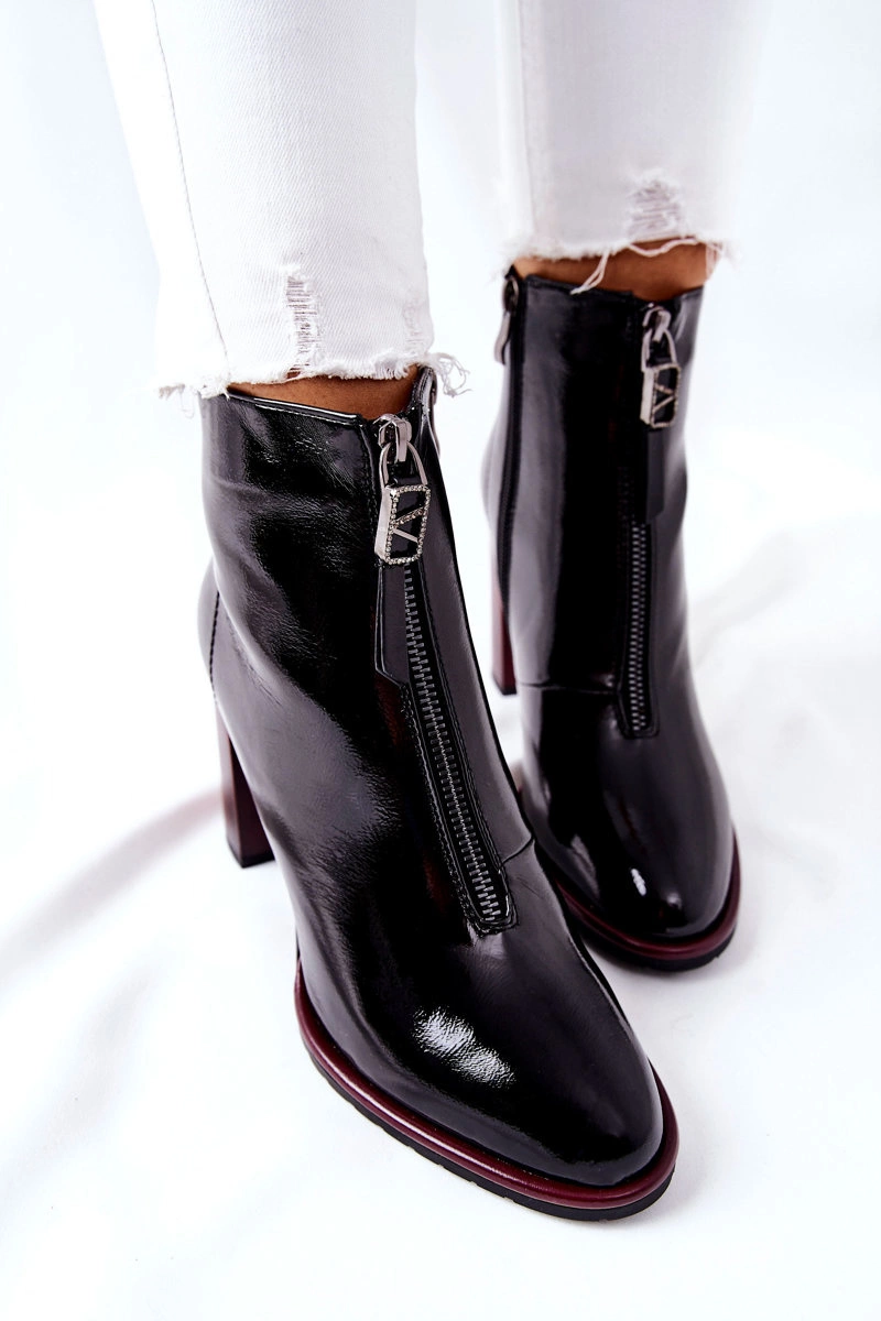 Damskie Botki Czarne Lakierowane na Słupku Cofton