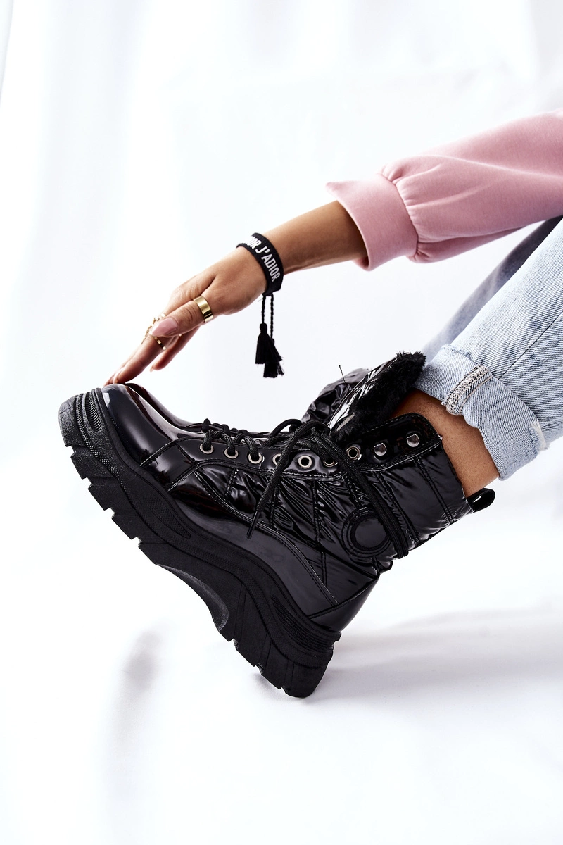 Damskie ocieplane botki wykonane ze skóry ekologicznej. Sznurowane oraz zapinane na zamek. Idealne na zimę.