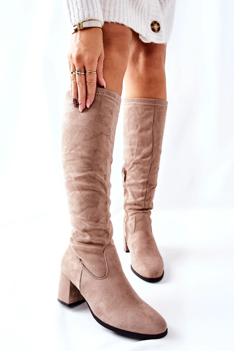 Kozaki Damskie Na Obcasie Zamszowe Beżowe Newferry