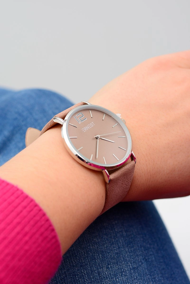 Damski zegarek Claire marki Ernest! Najnowszy model z piękną, szykowną kopertą oraz regulowanym paskiem, to idealny wybór dla eleganckich kobiet! Pasuje zarówno do codziennych stylizacji jak i tych bardziej eleganckich. Duża czytelna tarcza w kolorze paska. Nie czekaj dłużej, spraw sobie trochę elegancji w najwyższej jakości.