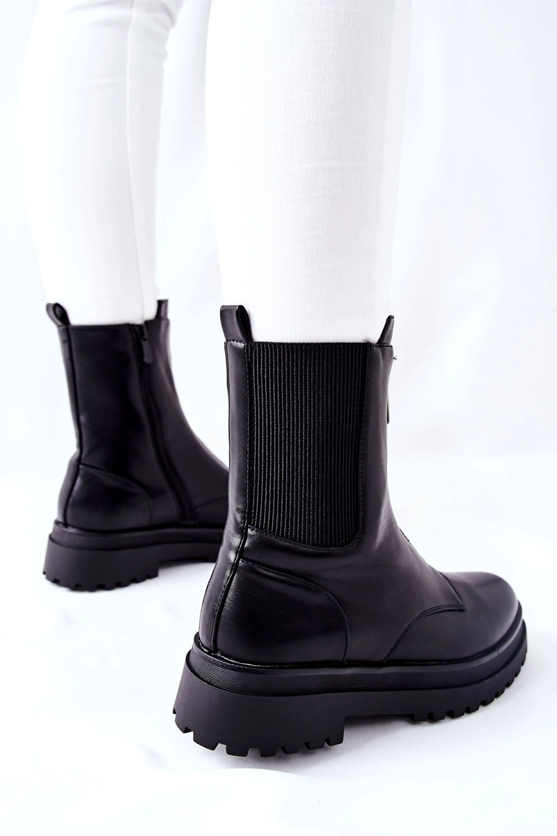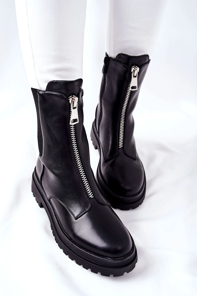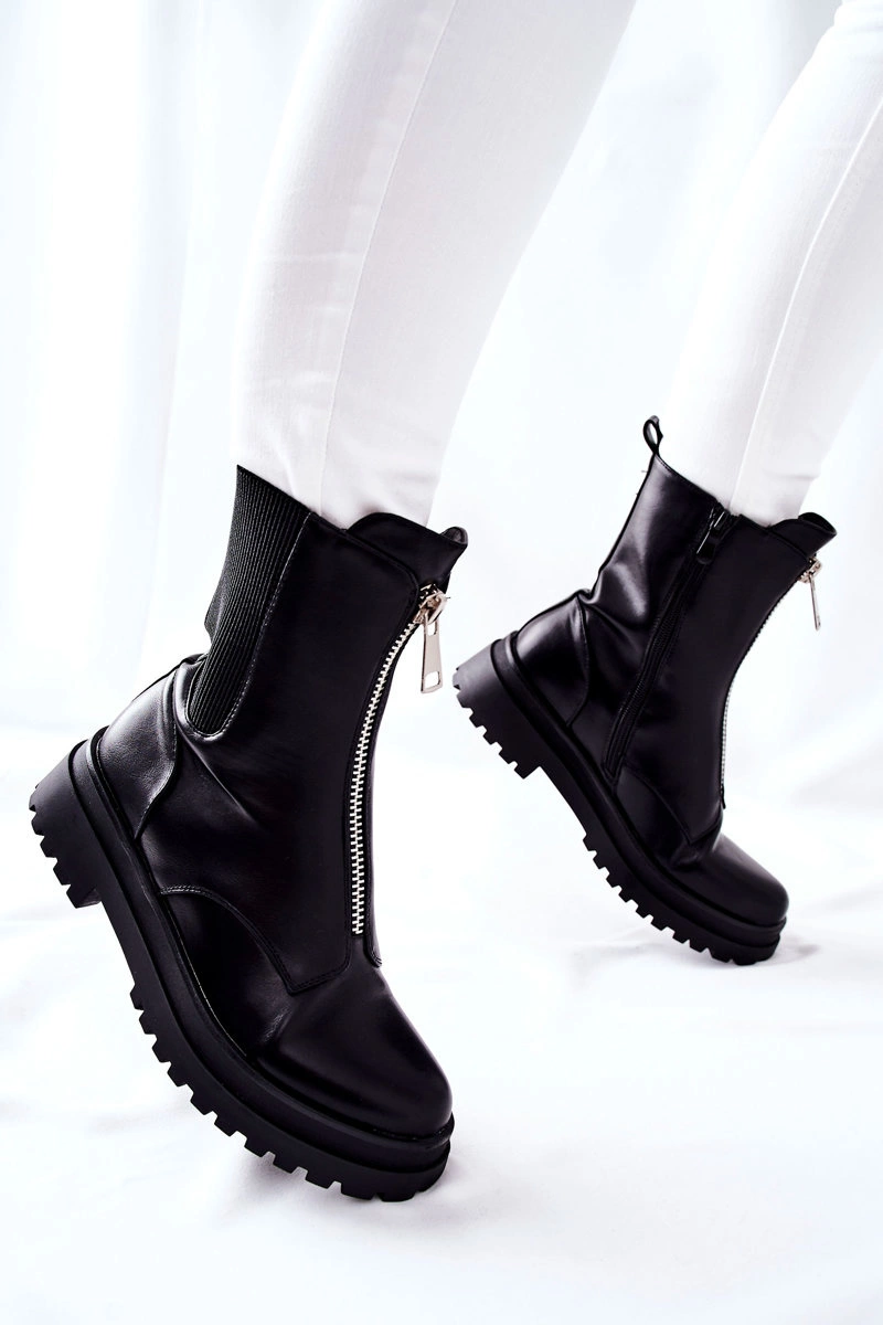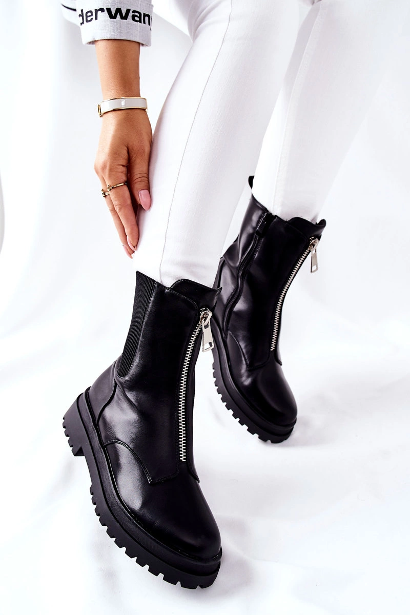 Botki damskie wykonane ze skóry ekologicznej. Wnętrze ocieplone jest miłym w dotyku kocem obuwniczym. Zakładanie ułatwi wszyty suwak, a idealne dopasowanie zapewni wszyta gumka na boku. Przy wyborze rozmiaru prosimy sugerować się tabelą rozmiarów.