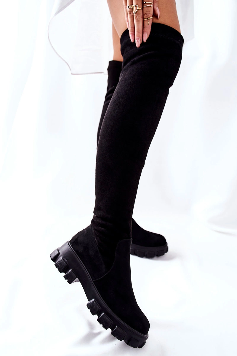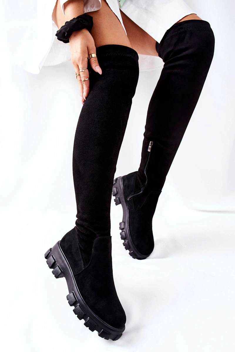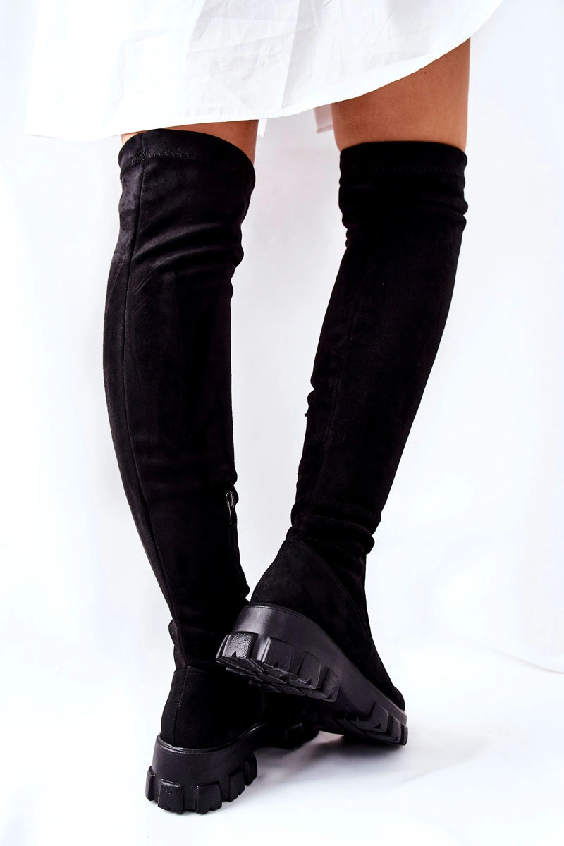 Zamszowe Kozaki Za Kolano Na Suwak Czarne Creen