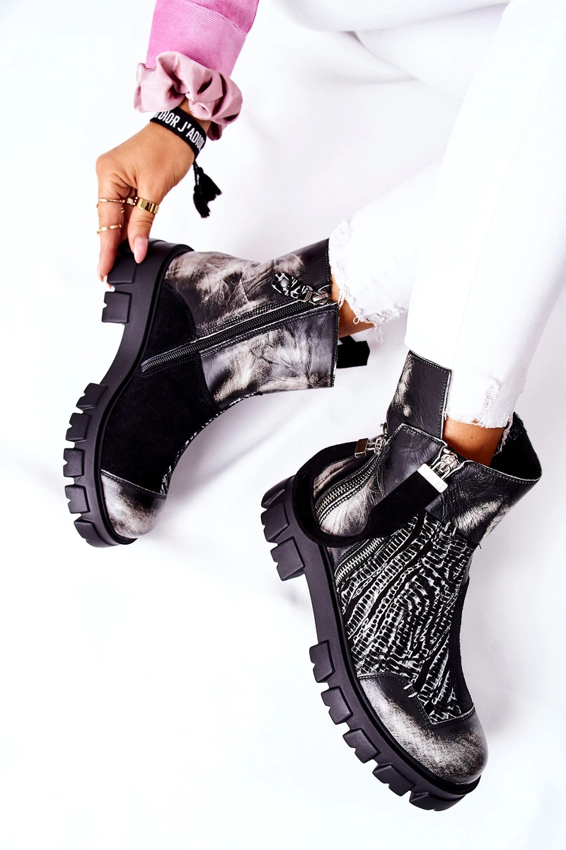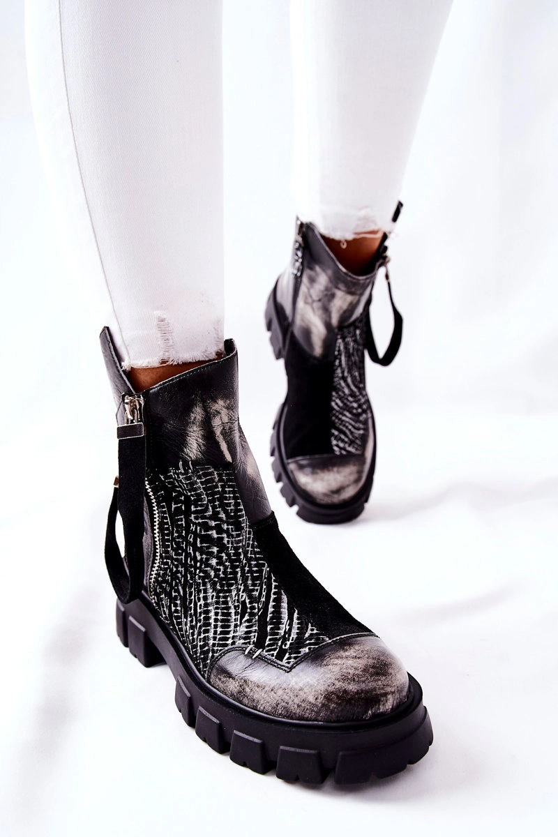 Skórzane Botki Sztyblety Maciejka Czarno-Białe 05137-21