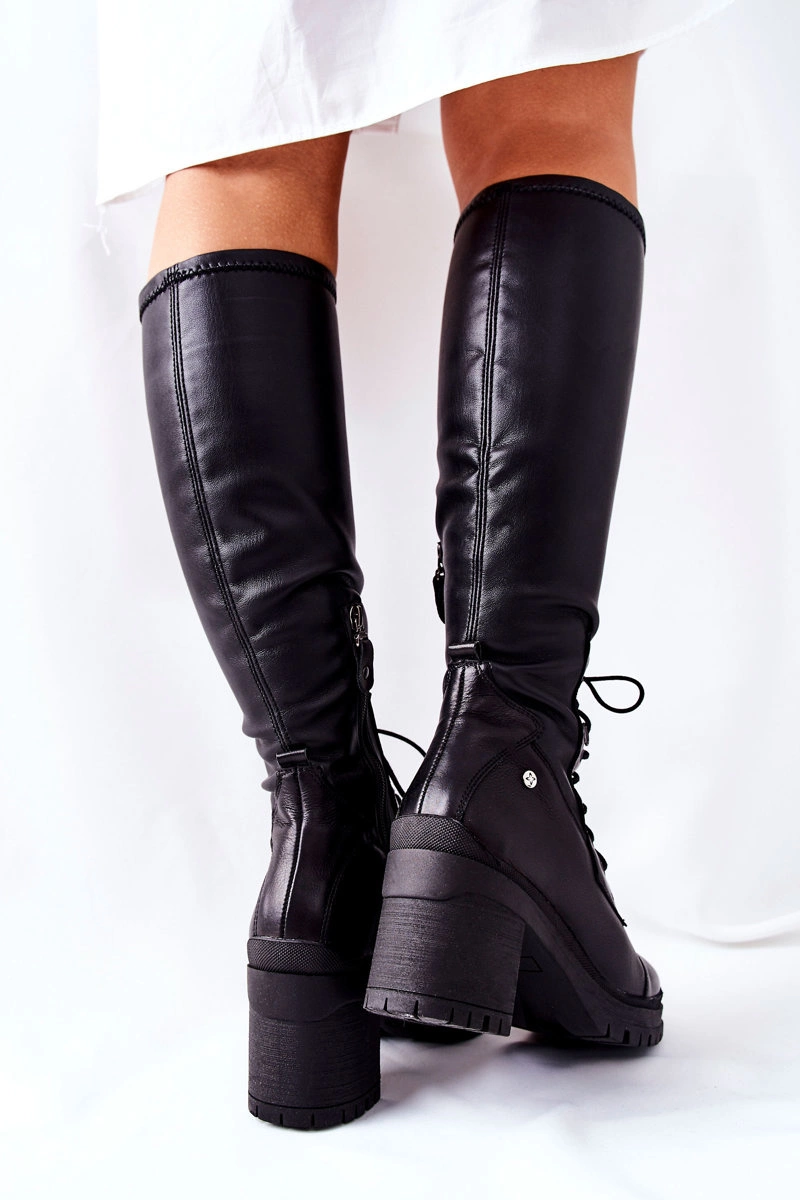 Kozaki Damskie Wiązane Maciejka Czarne 04782-01