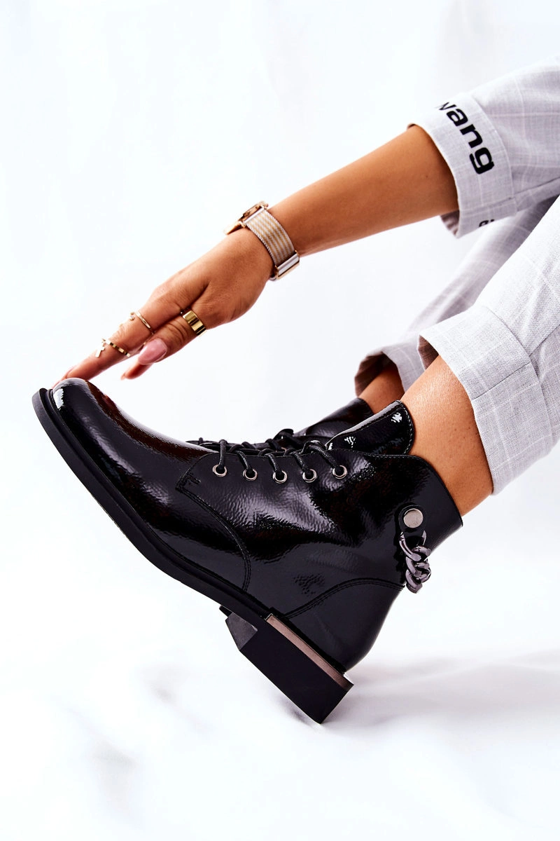 Botki Ocieplane Lakierowane Na Suwak Sergio Leone Czarne BT405