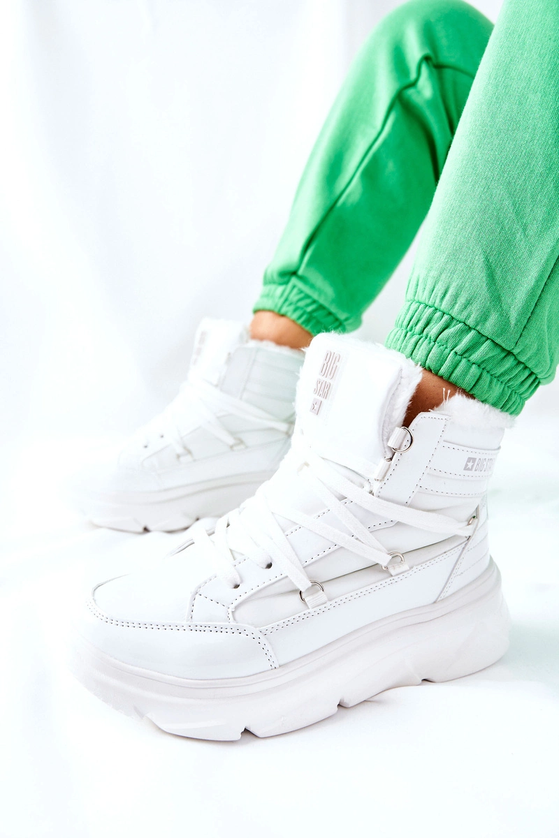 Marzysz o ciepłych i wygodnych śniegowcach? Te buty są stworzone właśnie dla Ciebie! Najnowsza propozycja śniegowców od firmy Big Star! Buty posiadają wkładkę MEMORY FOAM. Zapamiętuje kształt stopy, zapewnia doskonałe dopasowanie, absorbuje wstrząsy, jest odporna na odkształcenia oraz pozwala na odparowywanie wilgoci i regulacje temperatury. We wnętrzu znajduje się przyjemne w dotyku ocieplenie w postaci futerka. Zewnętrzna część buta oraz wkładka zostały wykonane z eko skóry.Przy wyborze rozmiaru prosimy kierować tabelą rozmiarów.