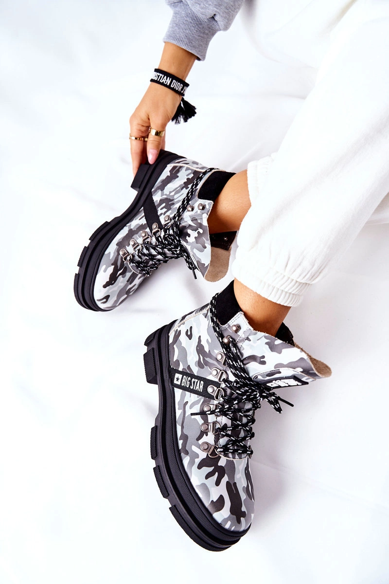 Polska marka BIG STAR to niebanalny styl oraz wysoka jakość wykonania. Botki z zewnątrz wykonane są ze skóry naturalnej. Wnętrze zostało wykonane z materiału tekstylnego. Podeszwa wykonana jest z wysokojakościowego, gumowego tworzywa. Trapery posiadają wiązanie, dzięki któremu możesz je dopasować do swoich wymagań. Ciekawy wzór sprawia, że będziesz w nich wyglądać wyjątkowo!