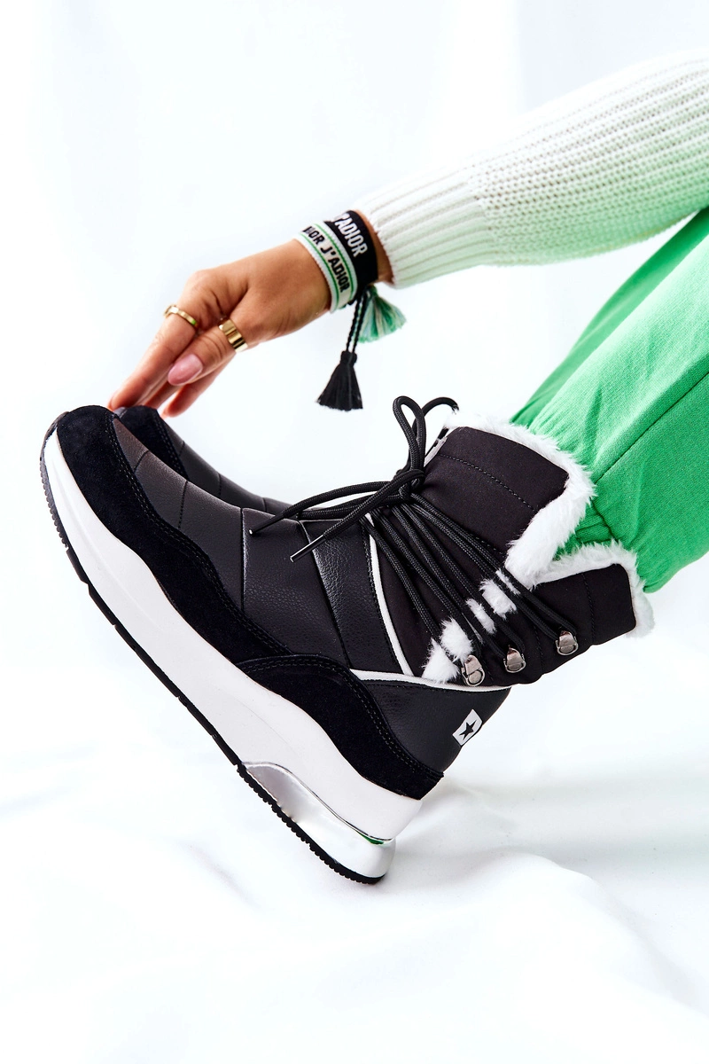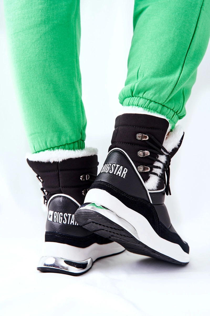 Wyjątkowe śniegowce od marki Big Star! Buty wewnątrz są niesamowicie miłe w dotyku, dzięki zastosowaniu ocieplenia w postaci futerka. Wkładka jest wykonana z materiału. Zewnętrzna część buta została wykonana z materiału tekstylnego oraz skóry zamszowej. Buty można idealnie dopasować do nogi, dzięki wiązaniu. Na zapiętku znajduje się logo Big Star. W tych śniegowcach żadna pogoda nie będzie Ci straszna! Przy wyborze rozmiaru prosimy kierować tabelą rozmiarów.