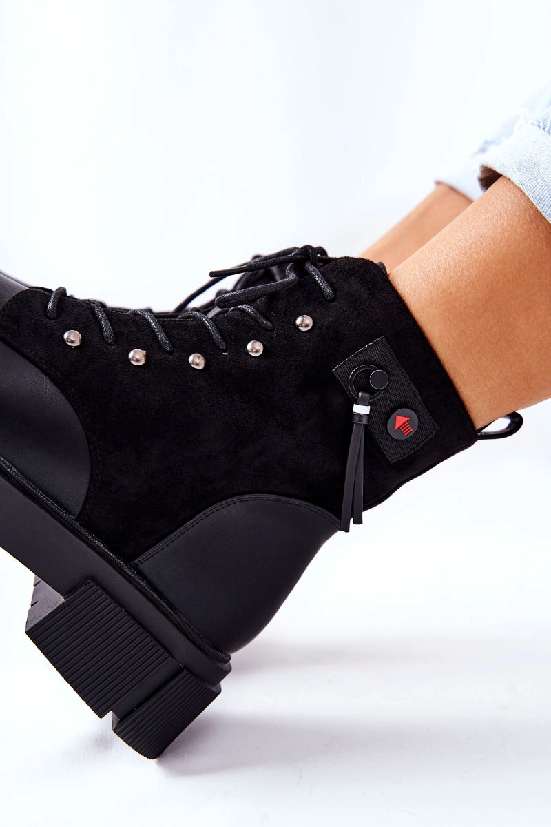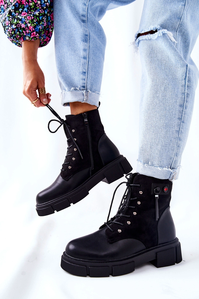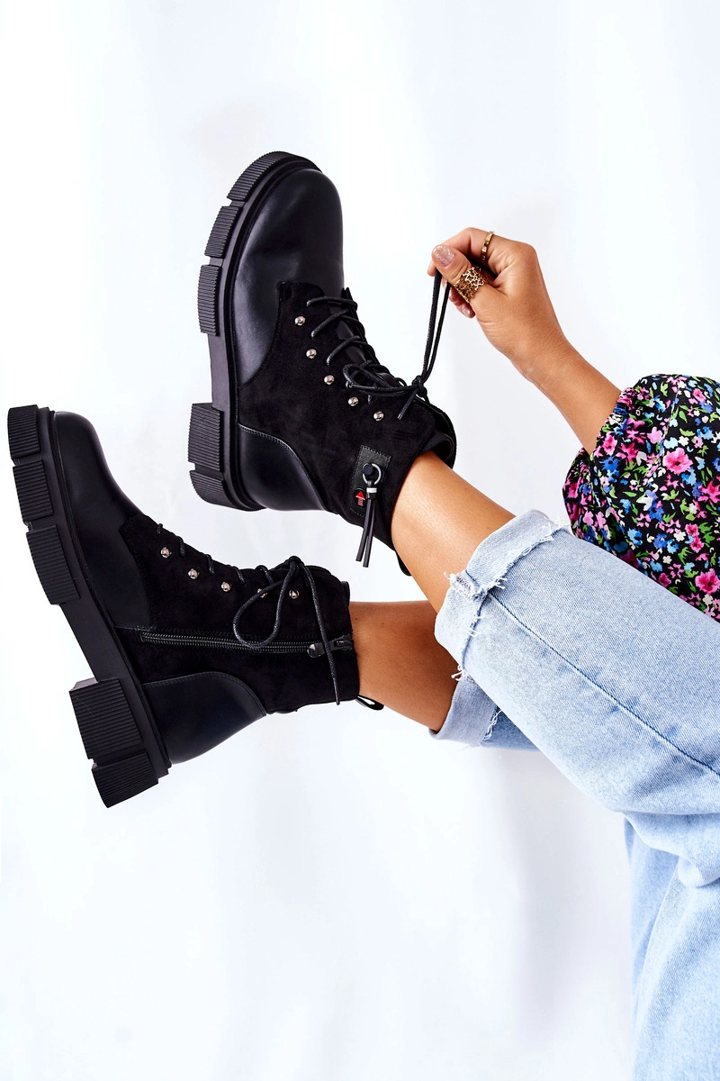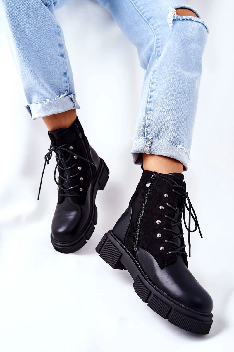 Skórzane Botki Workery Wiązane Czarne Your Way!