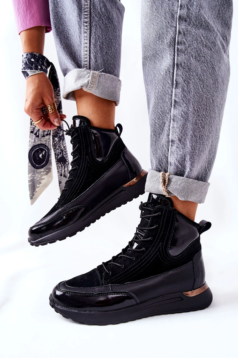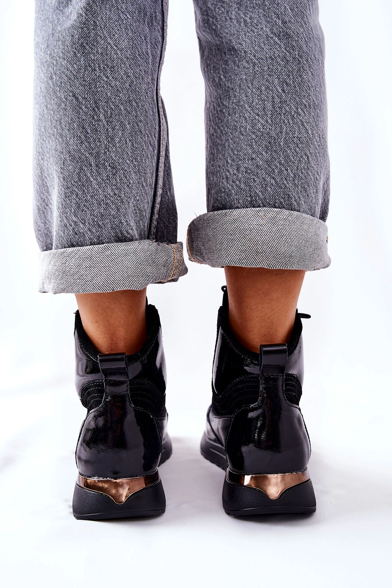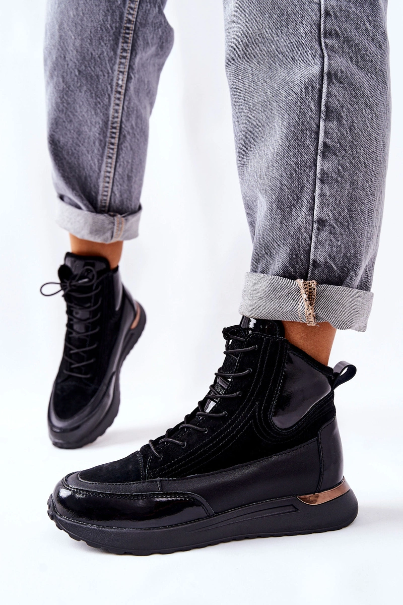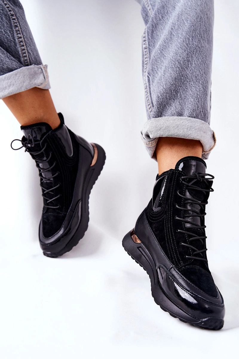 Wysokie Skórzane Sportowe Sneakersy Czarne Chocci