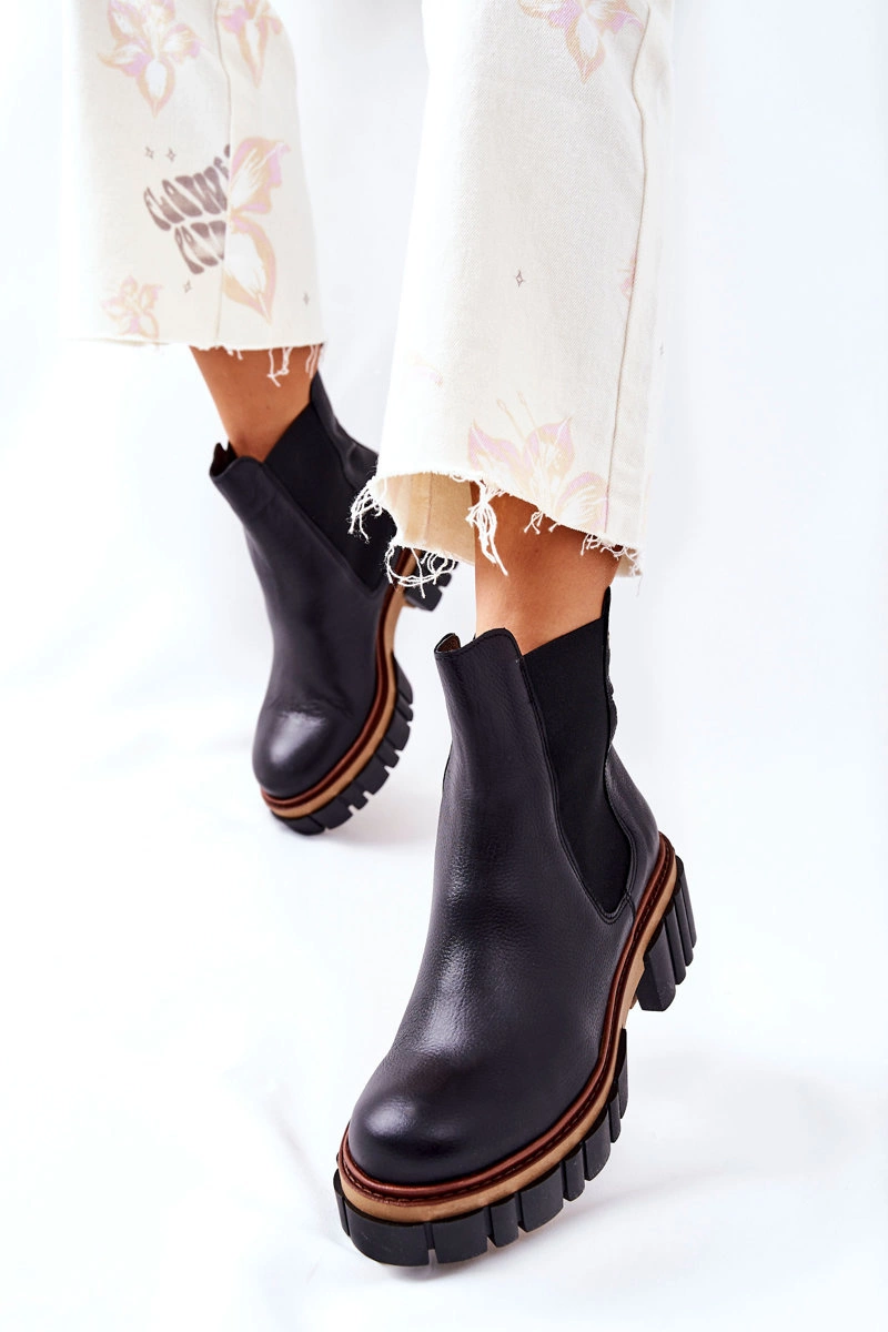 Skórzane Botki Workery Maciejka Czarne 05312-01