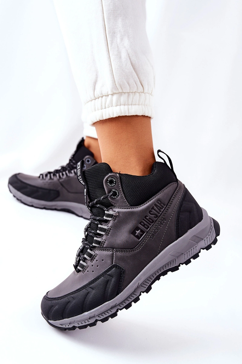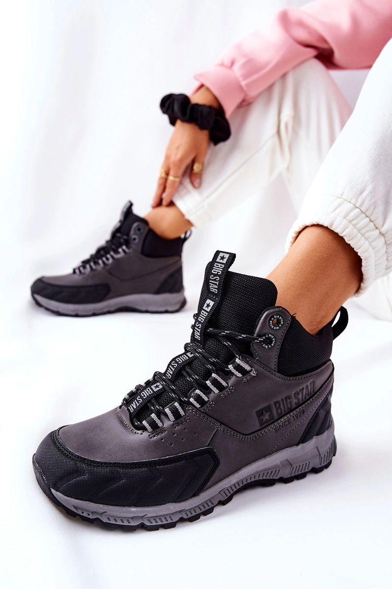 Damskie buty trekkingowe od polskiej marki Big Star. Buty zostały wykonane z eko skóry oraz materiału tekstylnego. Buty posiadają antypoślizgową podeszwę. Z boku buta znajduje się tłoczone logo marki BIG STAR. Posiadaja wiązanie. Koniecznie sprawdź całą naszą kolekcję butów BIG STAR. Przy wyborze rozmiaru prosimy sugerować się tabelą rozmiarów.