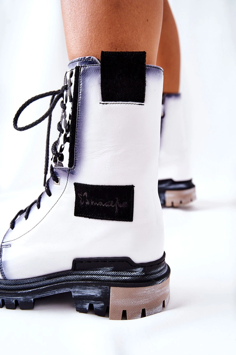 Skórzane Trzewiki Botki Ocieplane Maciejka Białe 05113-11