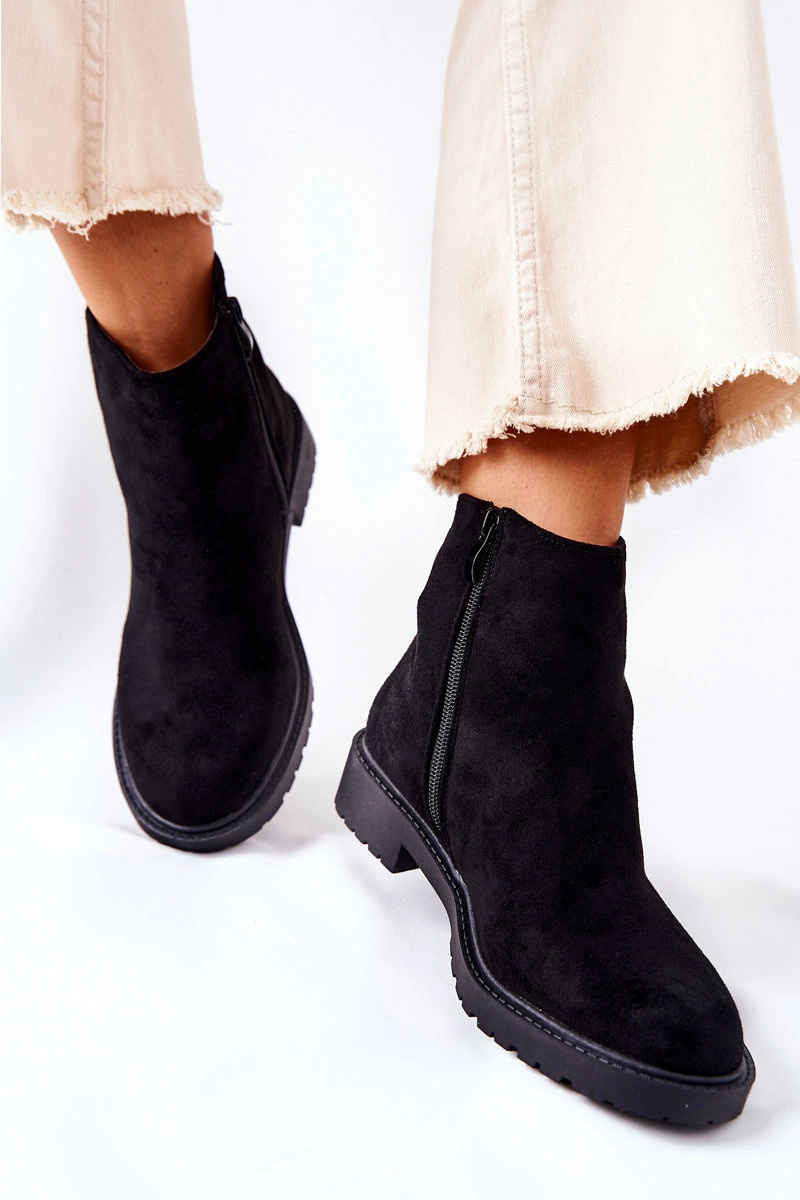 Model botków, który pasuje do każdej stylizacji dzięki swojemu klasycznemu fasonowi. Wykonane z przyjemnego w dotyku eko zamszu. Zapinane na suwak. W środku w całości ocieplane kocem obuwniczym. Klasyczne botki powinny znaleźć się w garderobie każdej kobiety, dlatego nie czekaj! Kup je już dziś! Przy wyborze rozmiaru prosimy sugerować się tabelą rozmiarów.