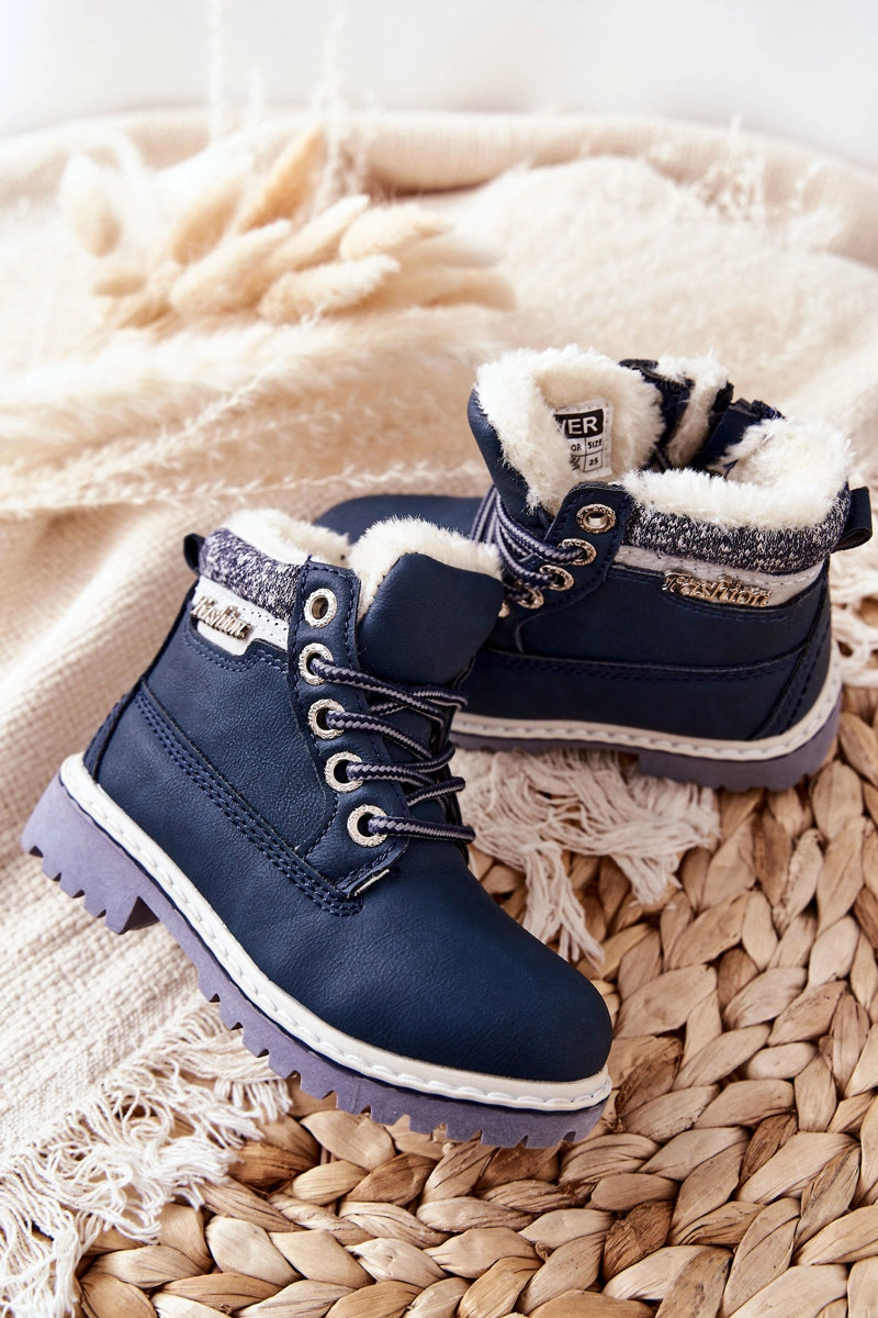 Dziecięce Ocieplane Traperki Z Futerkiem Granatowe Estee