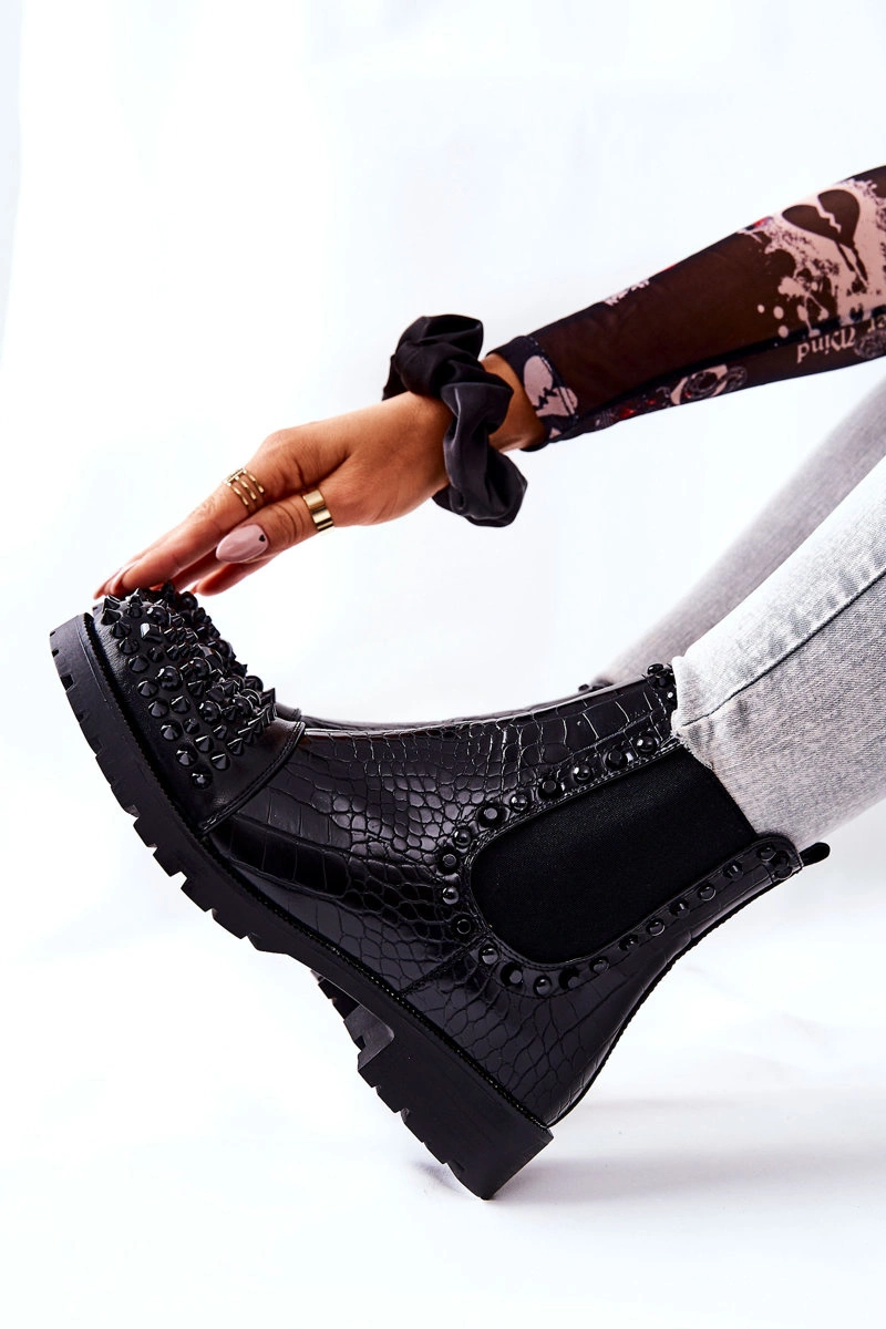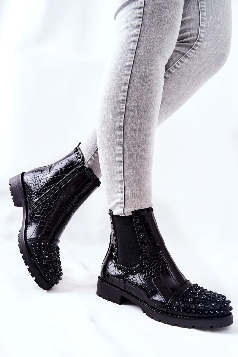Spójrz na te piękne botki! Wyjątkowy model, który zachwyci niejedną z Was! Botki wykonane z eko skóry. Posiadają ozdobne dżety na przodzie, które dodają butom charakteru. Zapinane na suwak. Posiadają delikatne ocieplenie. Płaski obcas zapewnia stabilność. Nie czekaj aż znikną! Przy wyborze rozmiaru prosimy sugerować się tabelą rozmiarów.