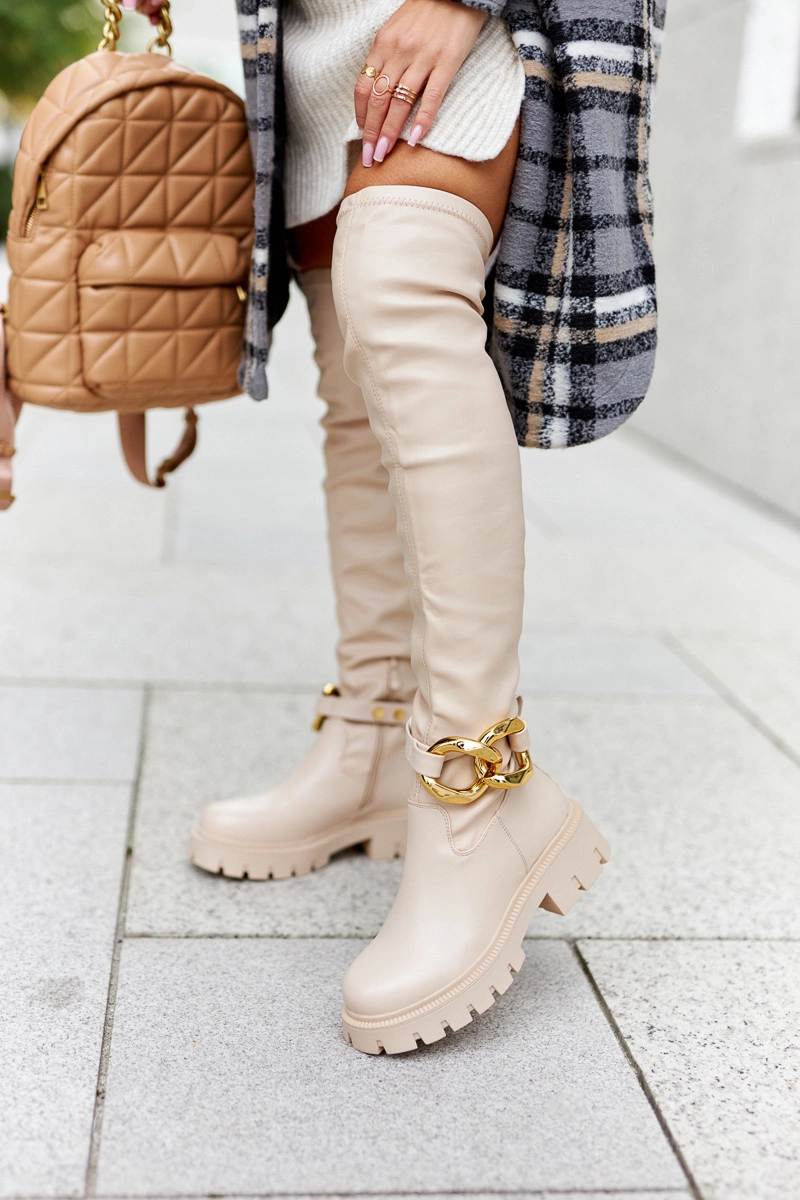 Wysokie Kozaki Z Ozdobnym Elementem Beżowe Masha