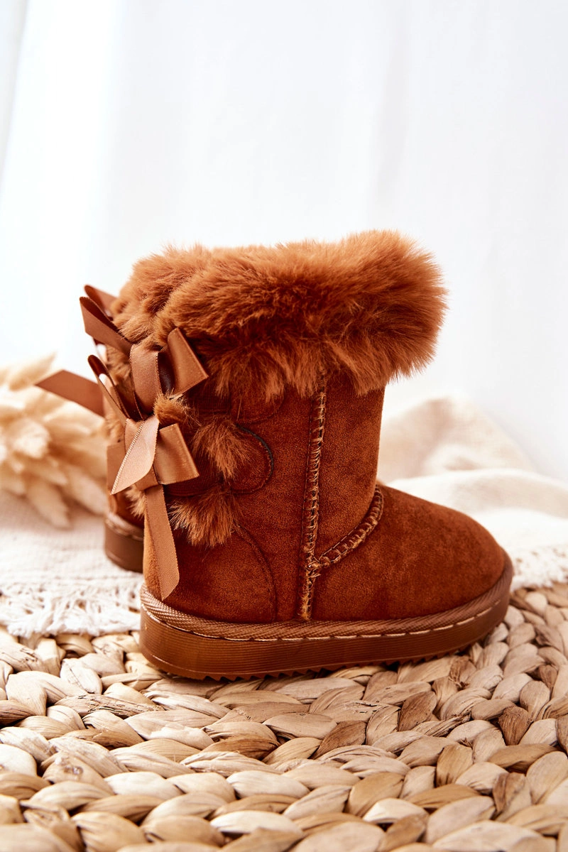 Dziecięce Ocieplane Botki Z Kokardkami Śniegowce D.Khaki Funky