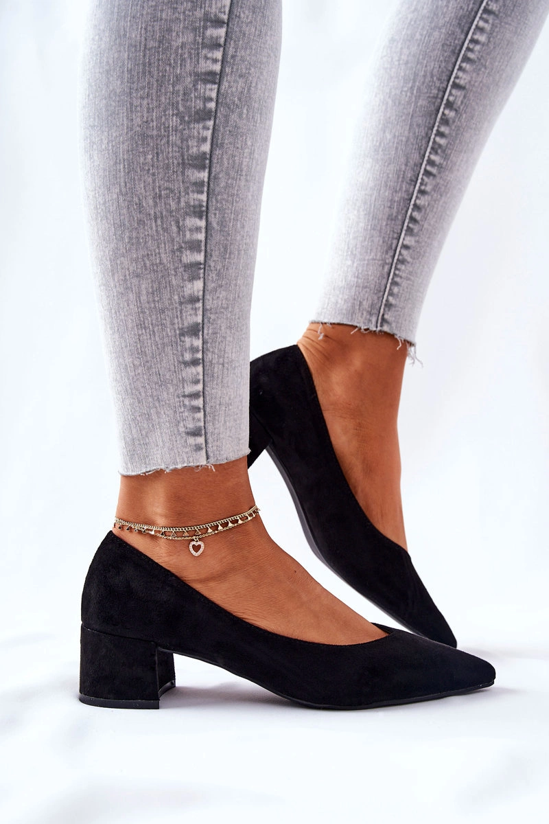 Zamszowe Czółenka Na Słupku Czarne Rossie