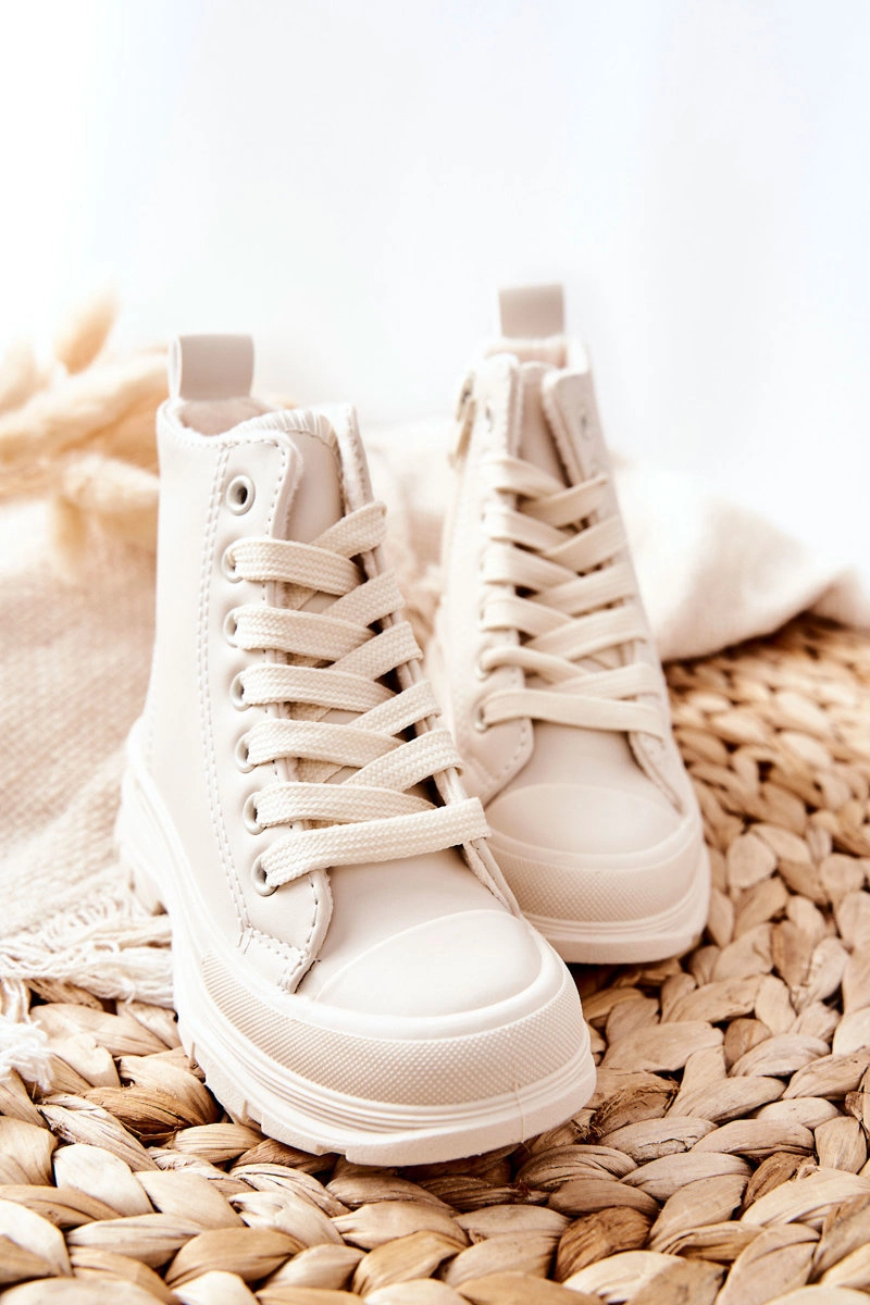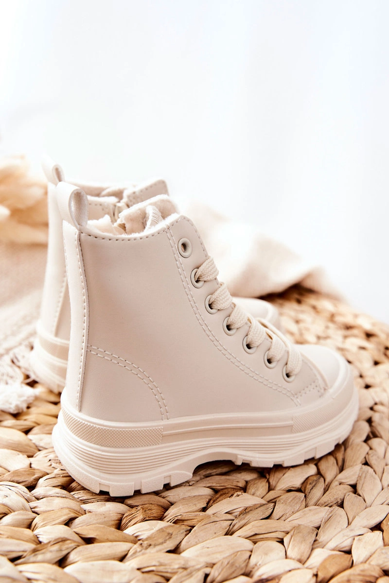 Dziecięce Skórzane Ocieplane Trampki Jasnobeżowe Bomi