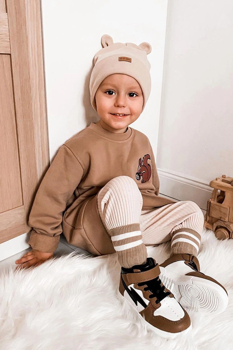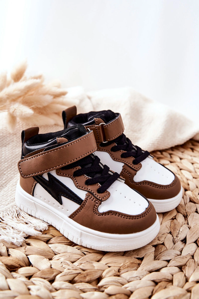 Dziecięce Wysokie Buty Sportowe Biało-Brązowe Bartnie