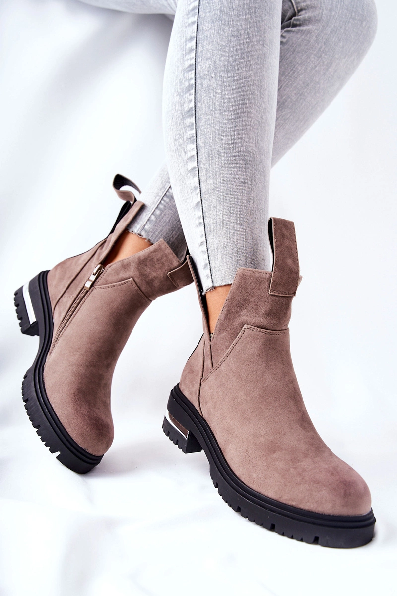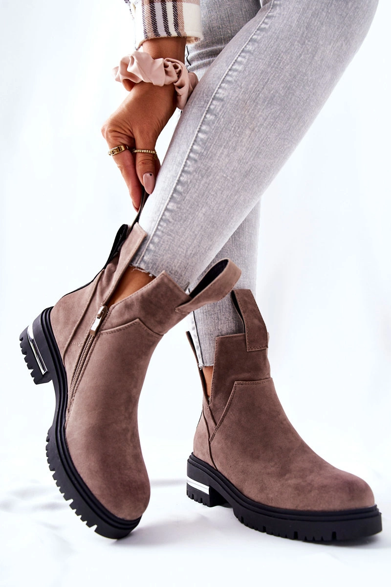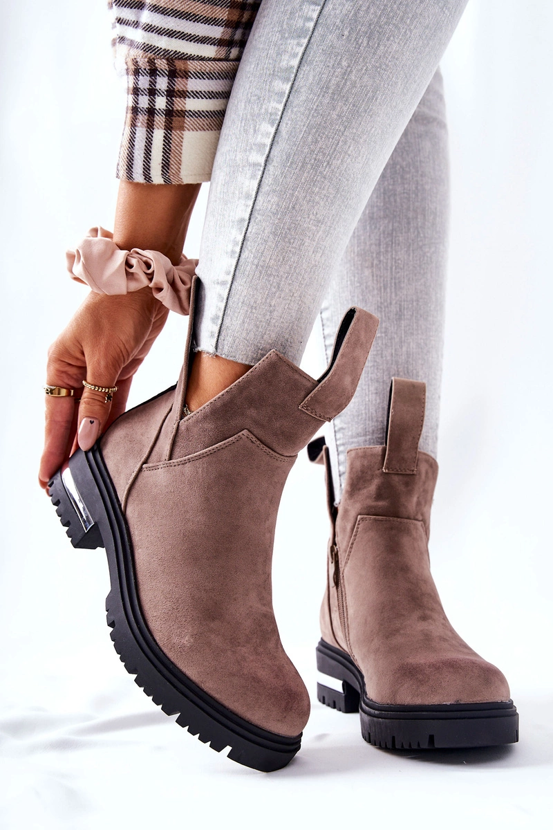 Ocieplane Botki Sztyblety Z Suwakiem Cappucino My Way