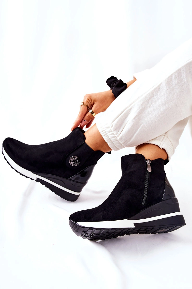 Zamszowe Botki Na Koturnie Czarne Lunelle