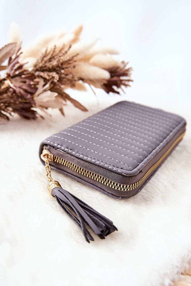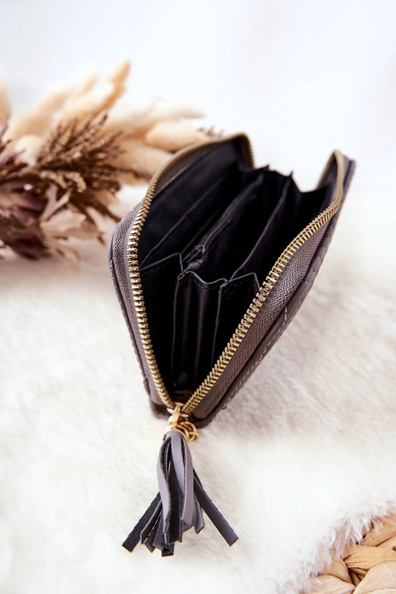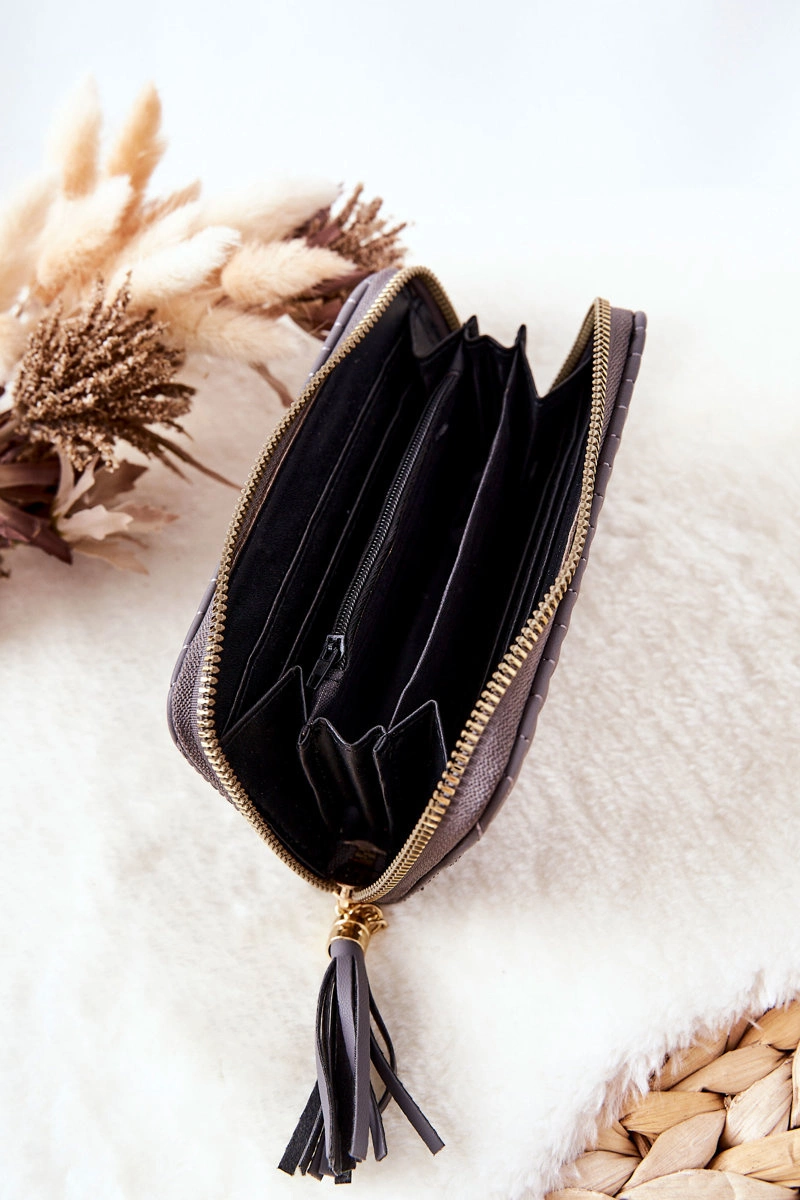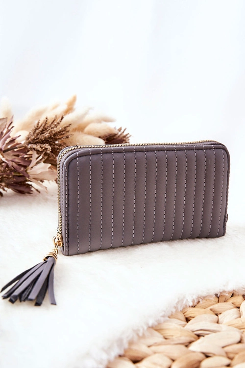 Piękny pikowany portfel zapinany na zamek. Pomieści bilony, banknoty oraz wizytówki. Wykonany ze skóry ekologicznej. W środku także posiada zamykaną na suwak kieszonkę. W zestawie dołączony odpinany pasek. Na końcu zewnętrznego suwaka jest przymocowany frędzelek. Spraw prezent sobie lub komuś bliskiemu!