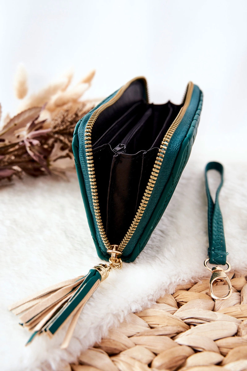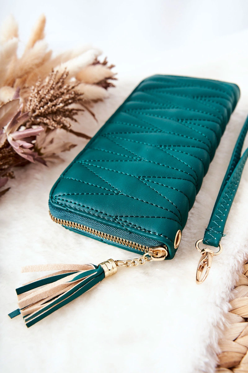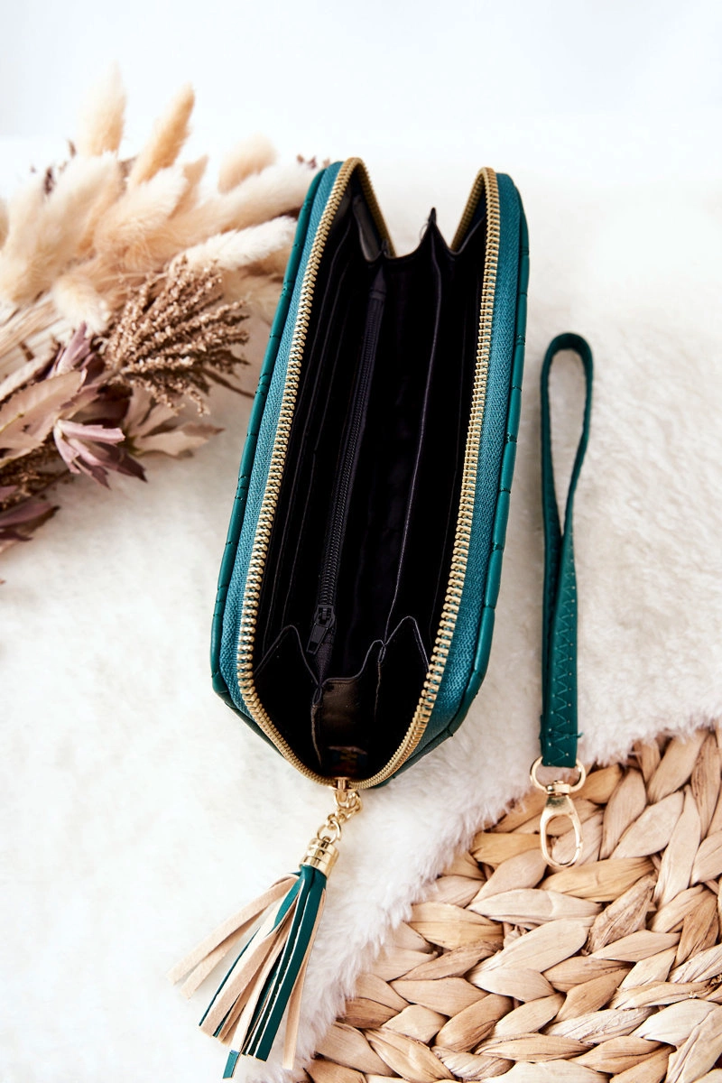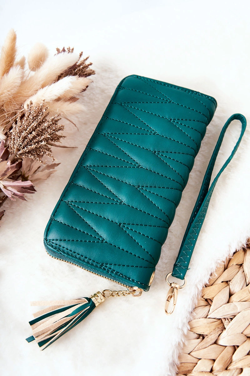 Duży Portfel Pikowany Na Suwak Z Paseczkiem Zielony