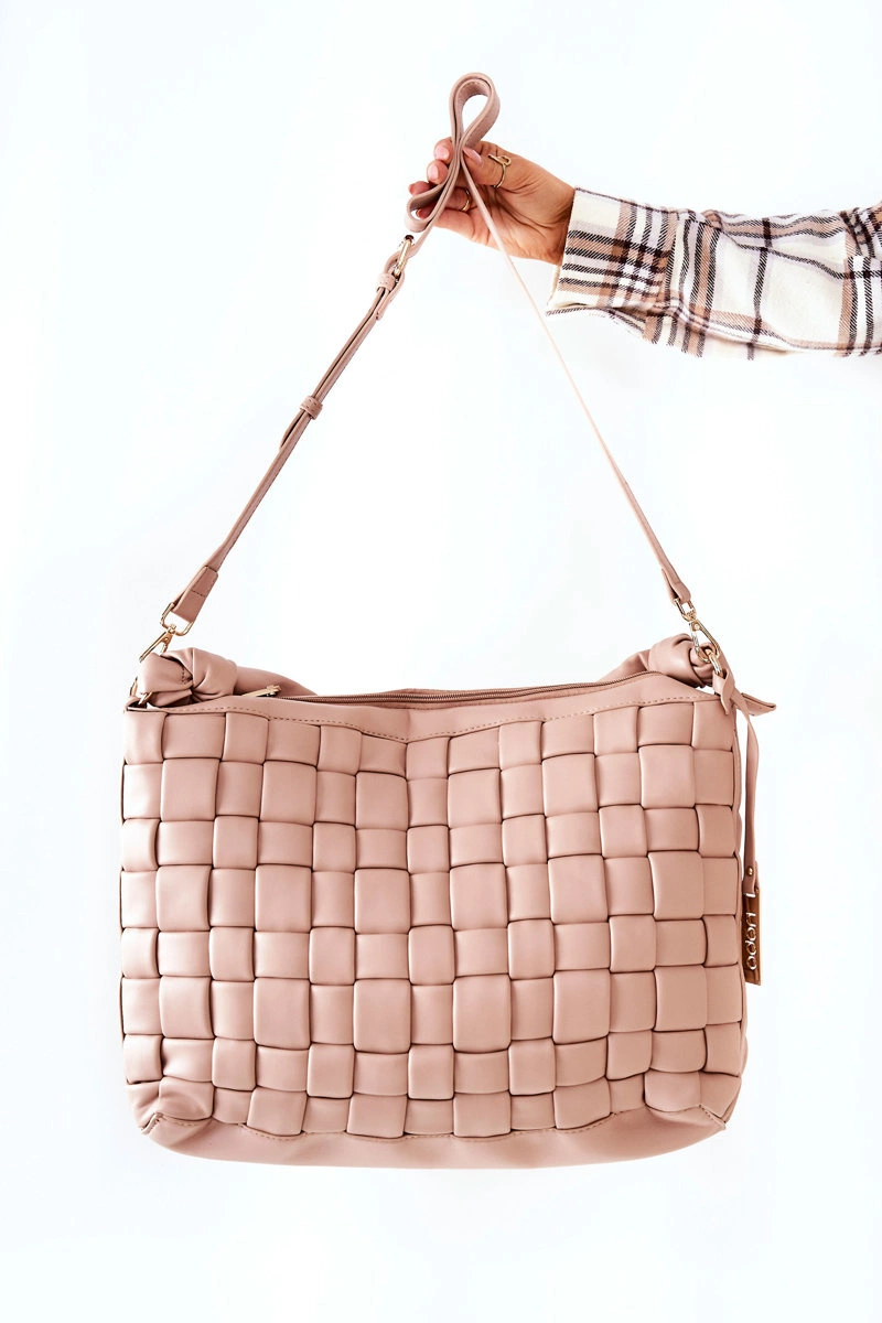 Piękna przeplatana torebka firmy NOBO została wykonana z eko skóry. Posiada ozdobny paseczek z logo marki NOBO. Dodatkowo dołączony jest do torebki pasek umożliwiający noszenie jej na ramieniu. Komora jest zapinana na zamek błyskawiczny. W wewnątrz znajdują się trzy kieszenie - jedna z nich jest zapinana na zamek.