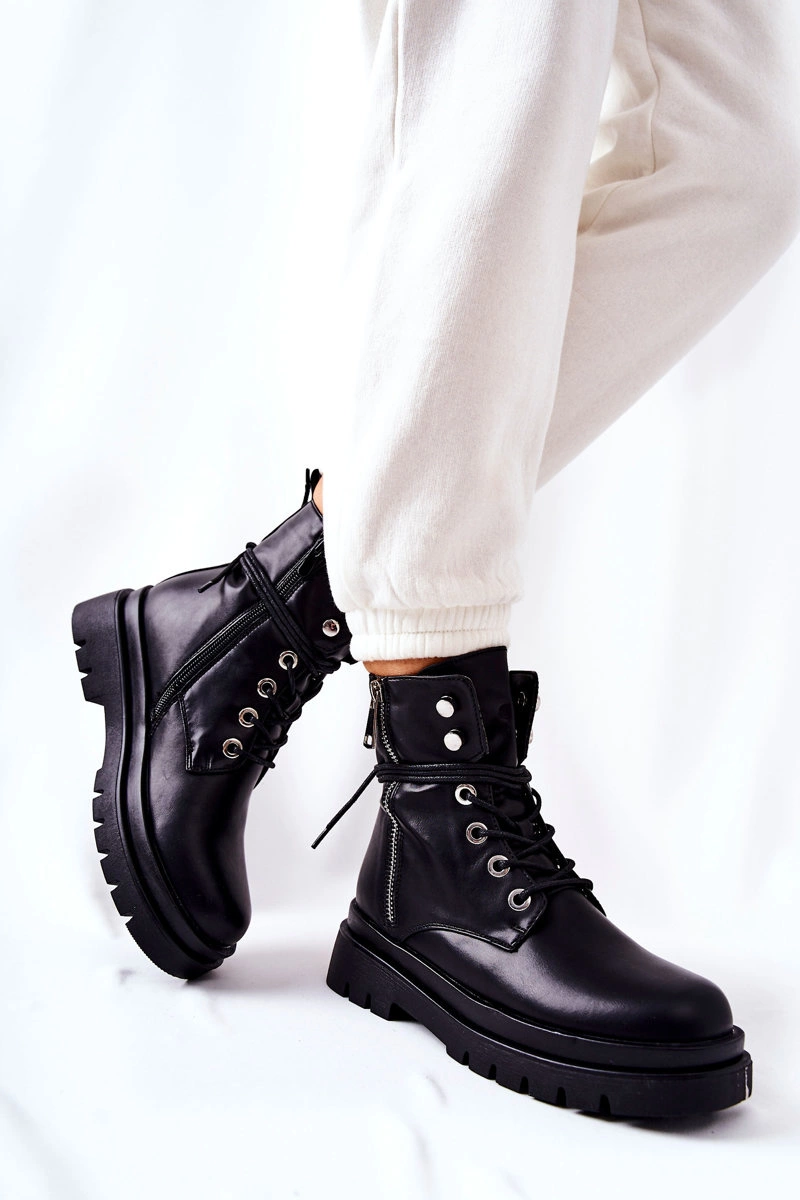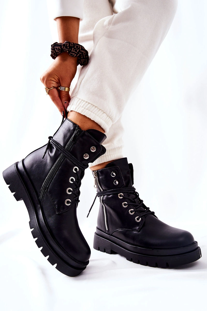Botki Na Suwak Z Wiązaniem Czarne Elissmo