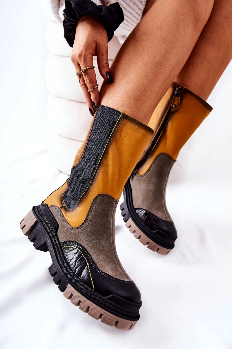 Wysokie Skórzane Botki Maciejka Żółto-Szare 05141-07