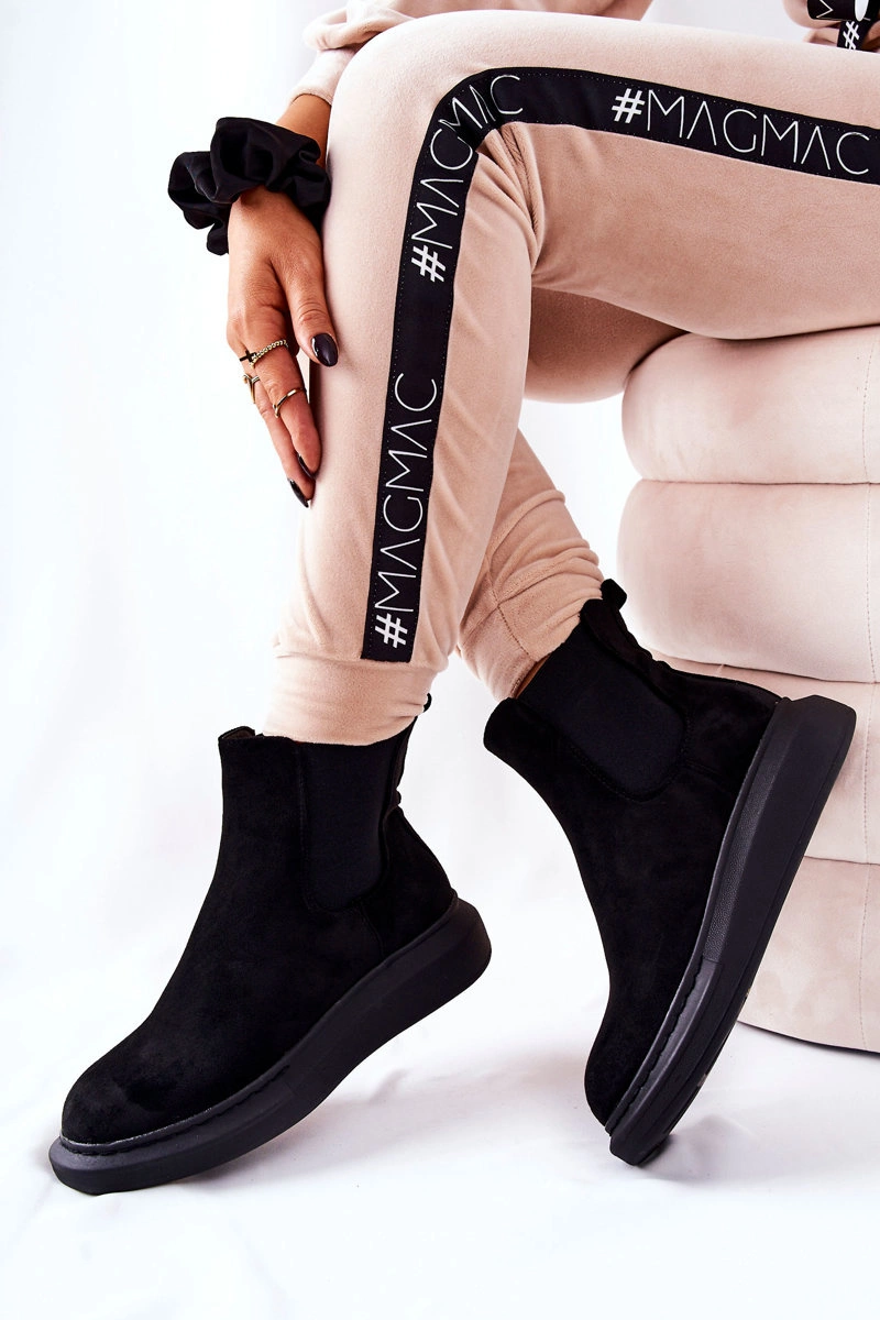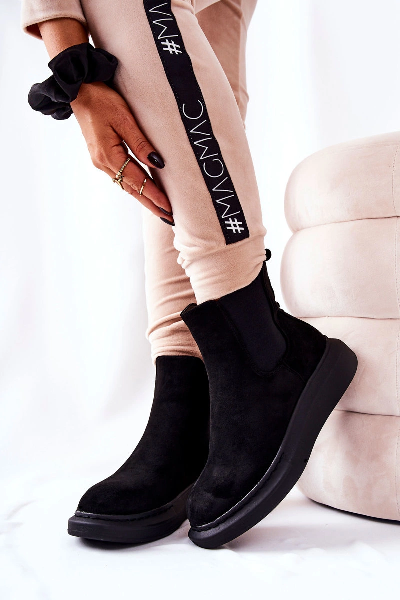 Zamszowe Botki Sztyblety Na Platformie Czarne Marissa