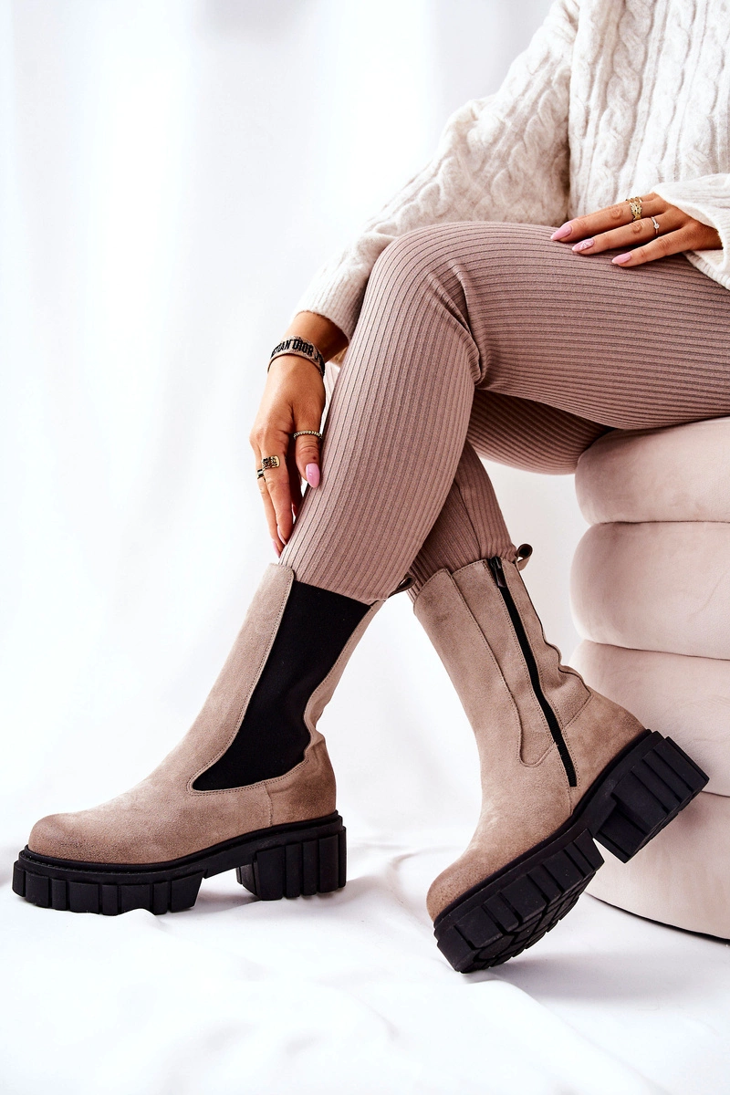 Świetne workery zostały wykonane z naturalnej zamszowej skóry. Masywna podeszwa z szerokim obcasem zapewnia stabilność na każdym kroku. Wkładka jest ocieplana z elementem skórzanym. Zapinane na suwak. W środku posiadają ocieplenie w postaci koca obuwniczego.Przy wyborze rozmiaru prosimy sugerować się tabelą rozmiarów.