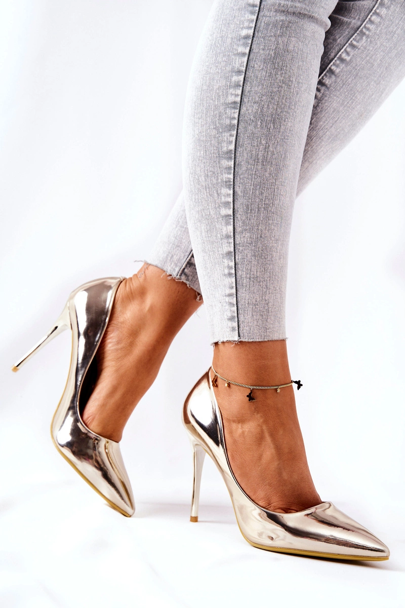 Eleganckie Lustrzane Szpilki Złote Adrinnah
