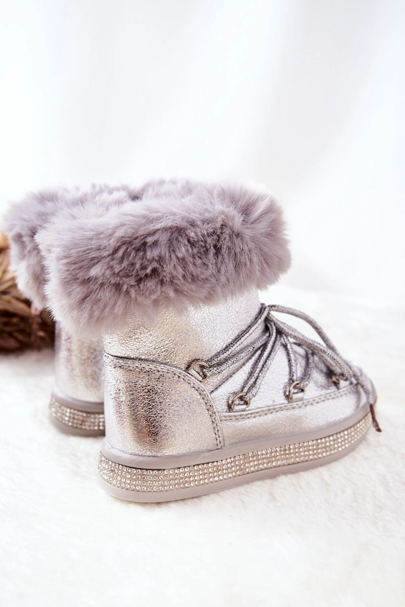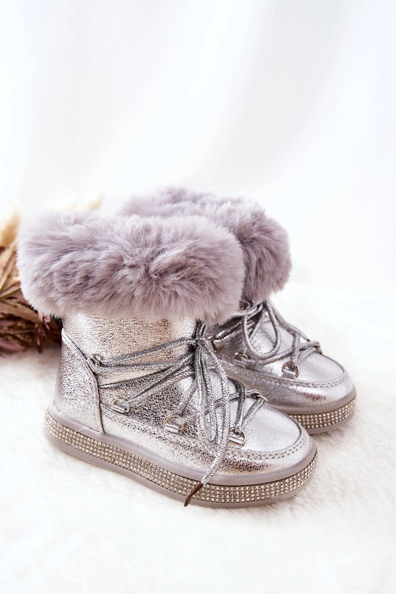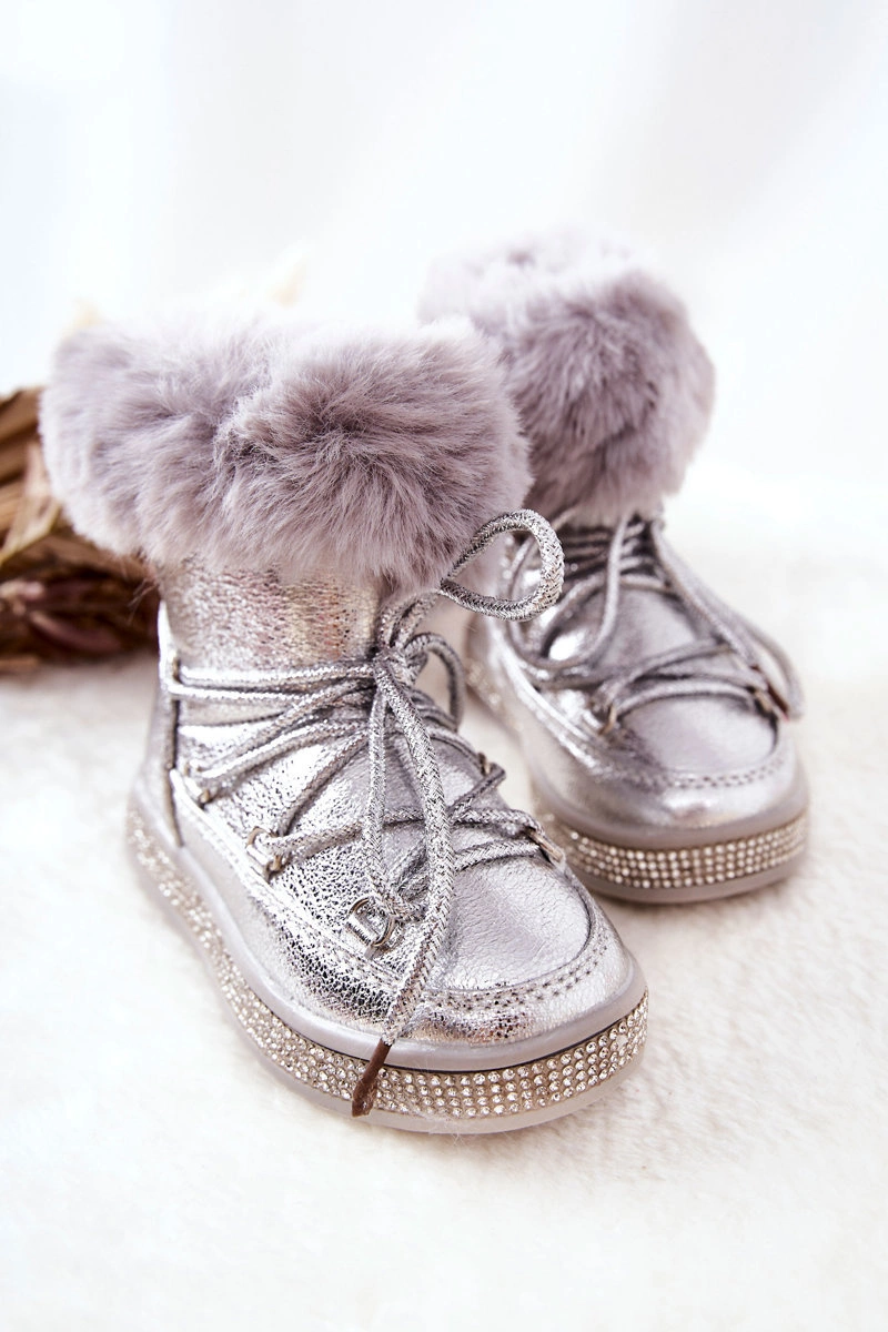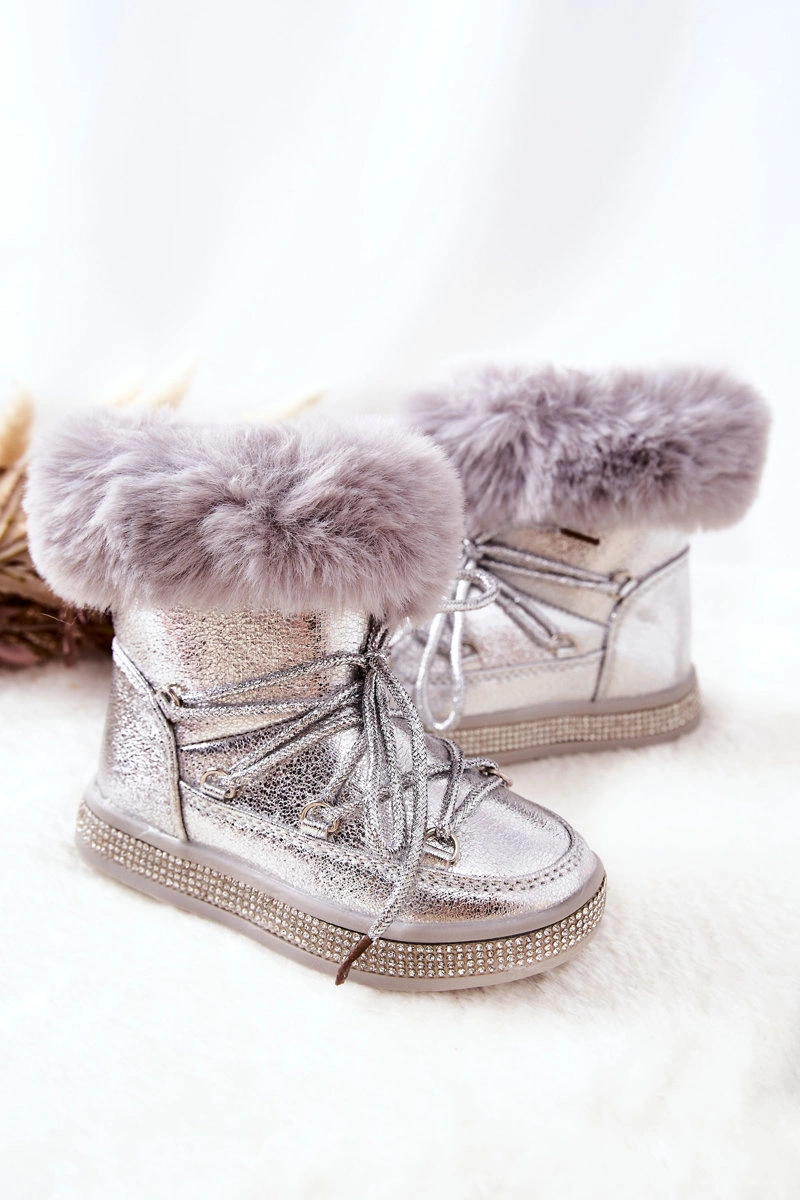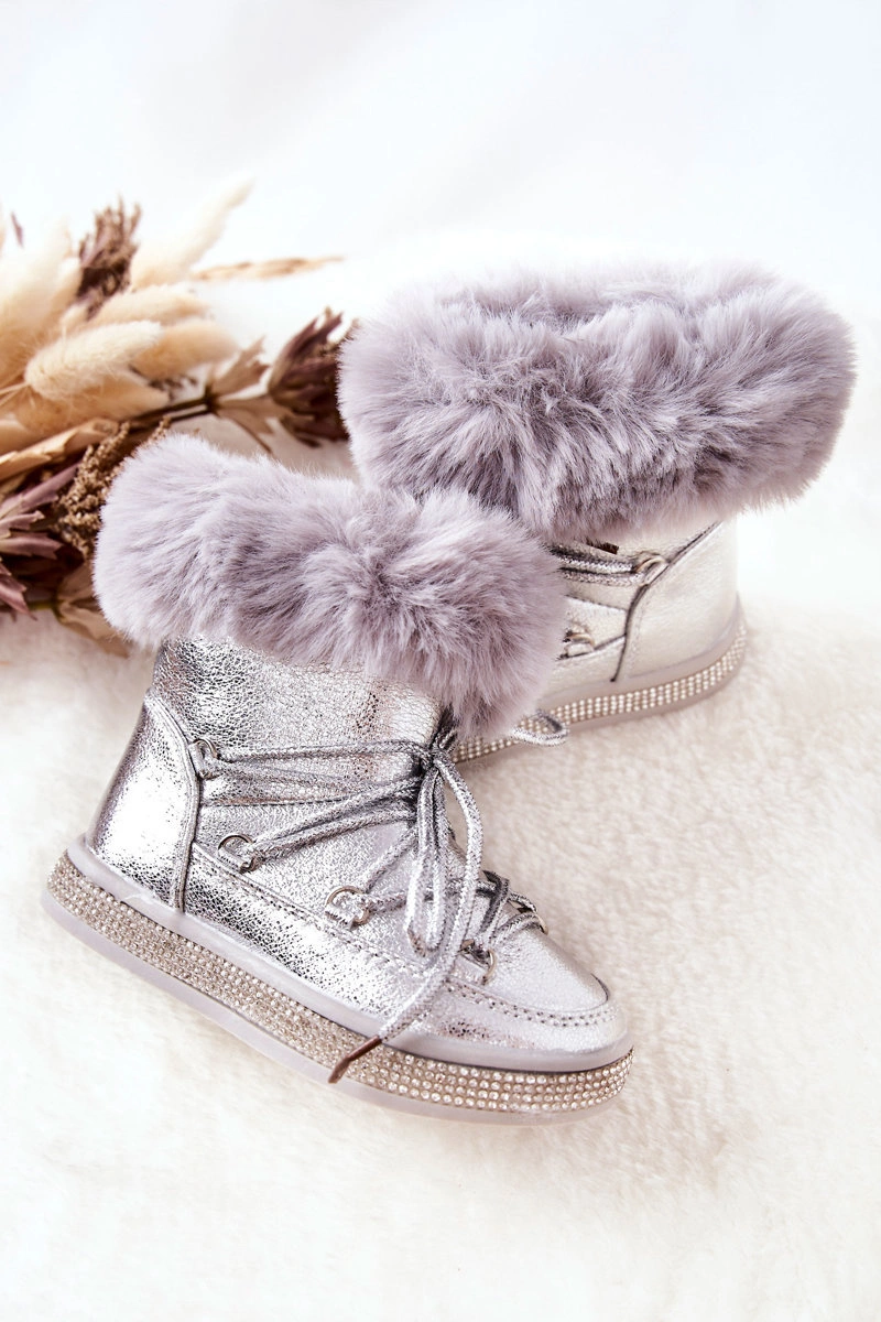 Dziecięce Śniegowce Z Futerkiem Srebrne Grandis