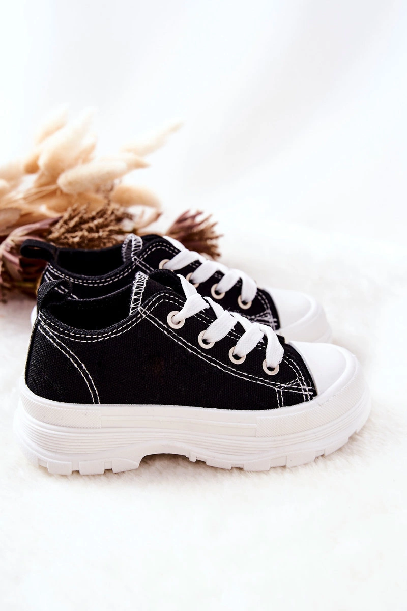 Dziecięce Trampki Na Platformie Czarno-Białe Travel Time