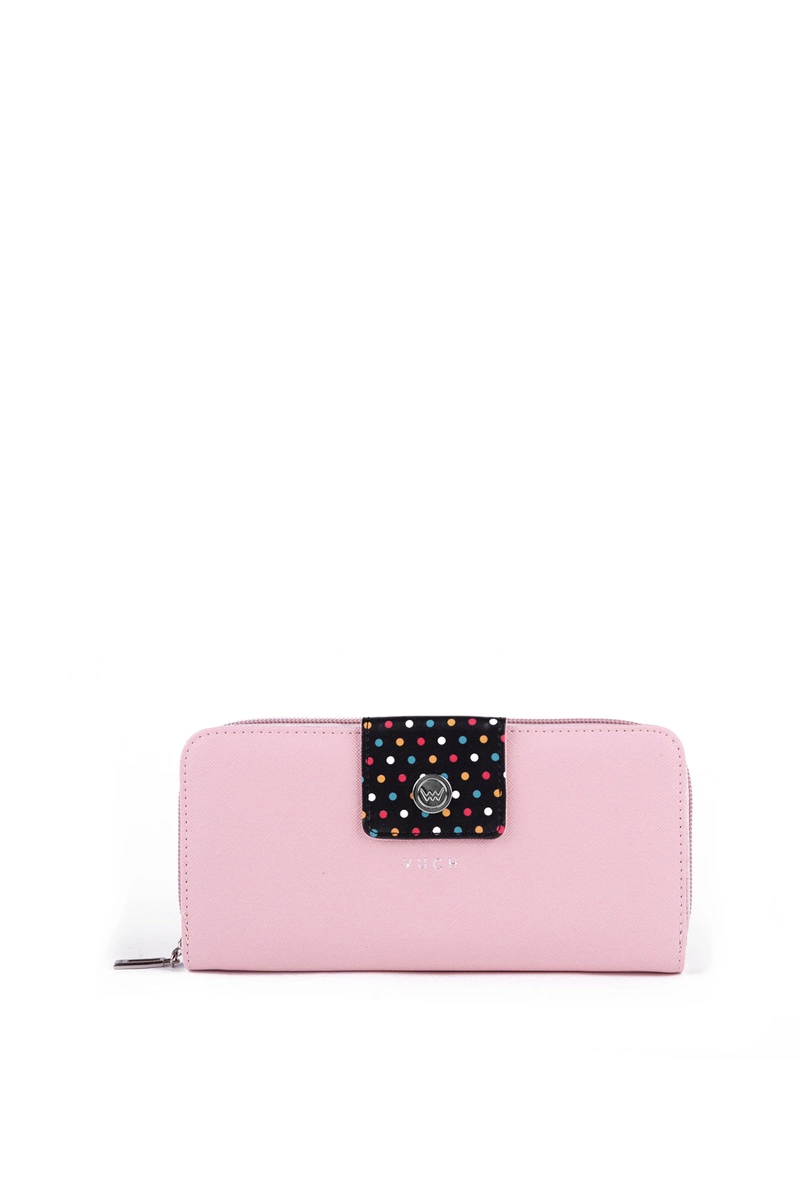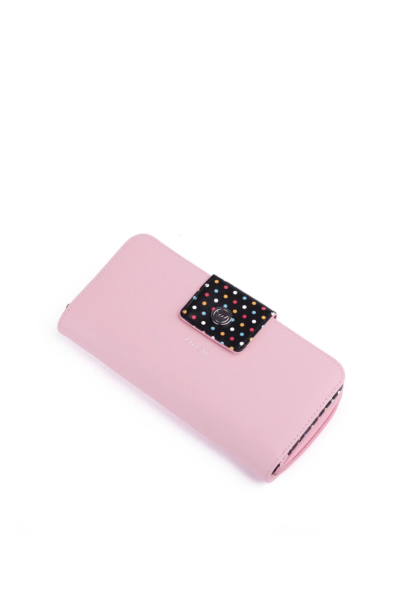 Duży Portfel Damski Na Suwak Kropki Jasnoróżowy Huntress