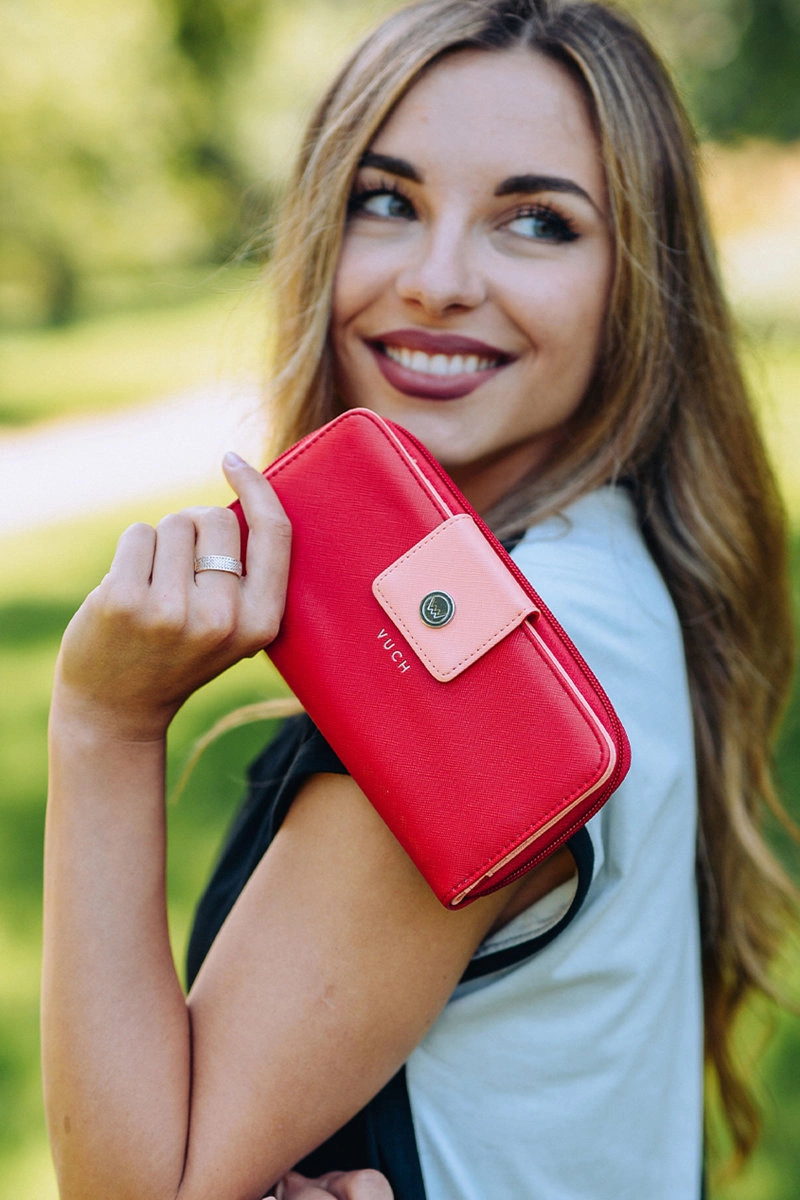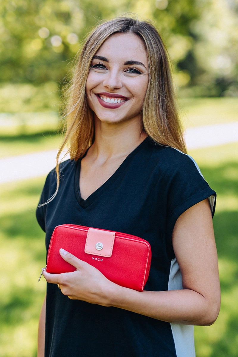 Duży Portfel Damski Na Suwak Czerwono-Pomarańczowy Huntress